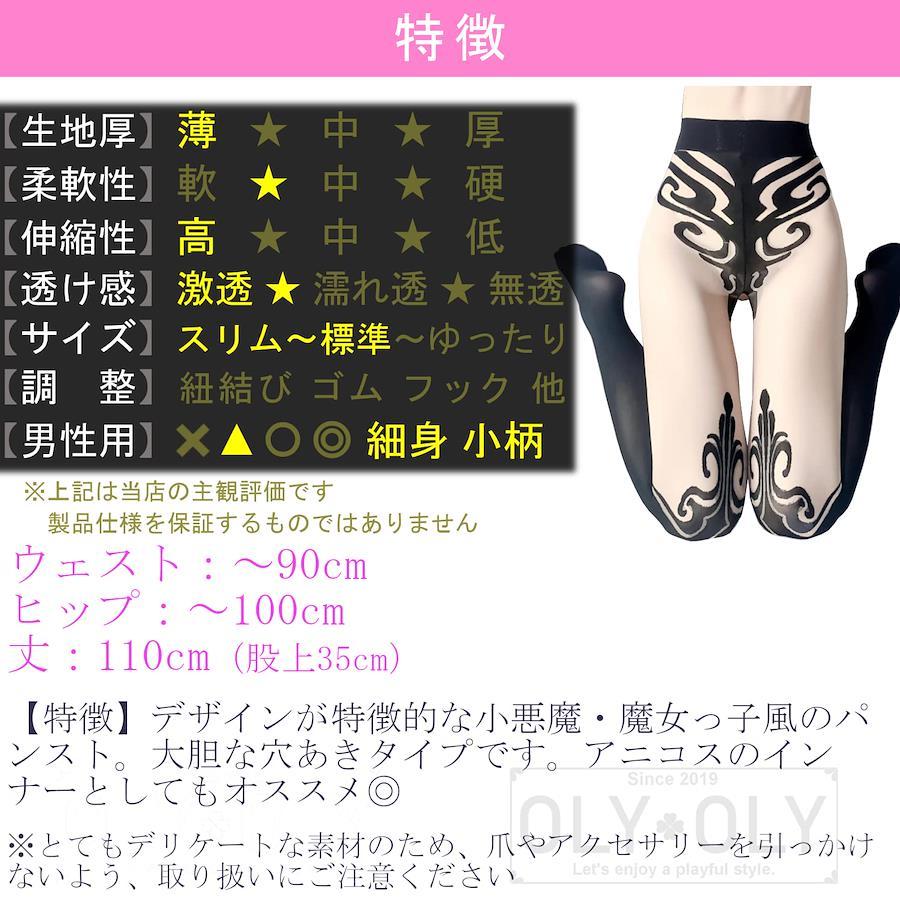 【商品内容】パンティストッキング 1枚【サイズ】女性用フリーサイズ(S~L相当)ウェスト:~90cm、ヒップ:~100cm、丈:110cm(股上35cm)、身長~180cm【カラー】ベージュ×ブラック【特徴】デザインが特徴的な小悪魔・魔女っ子風のパンスト。大胆な穴あきタイプです。アニコスのインナーとしてもオススメ◎※とてもデリケートな素材のため、爪やアクセサリーを引っかけないよう、取り扱いにご注意ください(#lf)(#lf)(#lf)商品購入前に、ストア紹介ページをご確認ください。