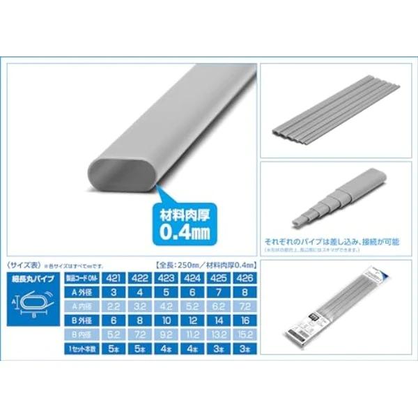 OM-426 プラ=材料【グレー】 細長丸パイプ 8 x 16 mm 3本入