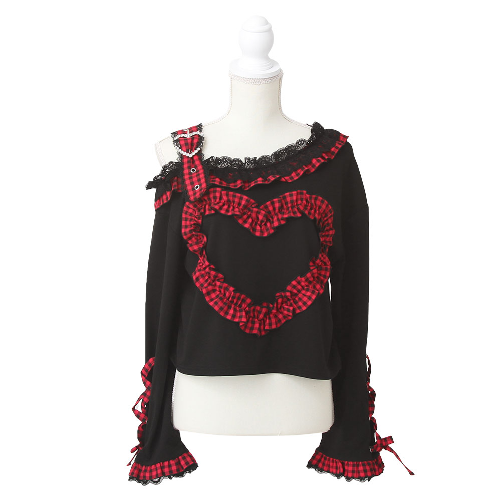 ワンショルダーハートレースフリルトップス