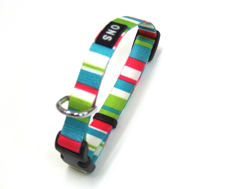 レインボー柄がオシャレでエネルギッシュなワンタッチ首輪