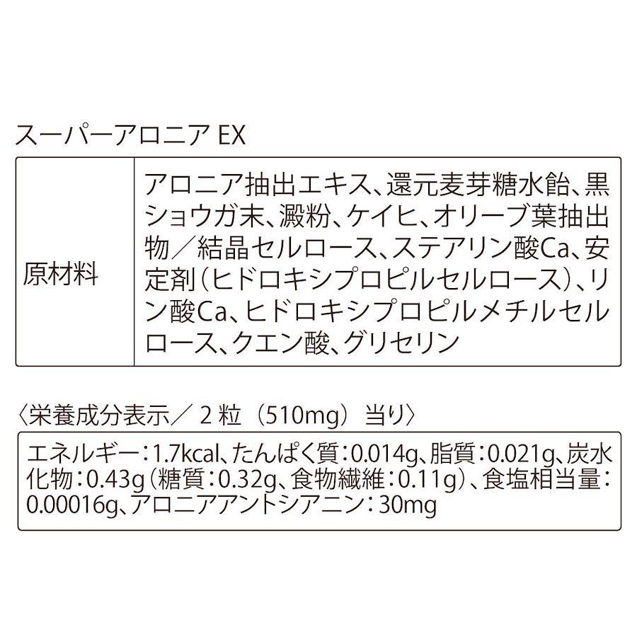 ■サイズ:??16.1x10x1.2cm;20g健康果実アロニアの、アロニアアントシアニンのダイエットサポート力に着目! 大人の燃焼意欲をサポートする、ダイエットサポートサプリメントです。健康果実アロニアを研究し続けてきたオルビスが高品質のアロニアにこだわり、その特有成分を抽出して作った大人のためのダイエットサポートサプリメントです。アロニアアントシアニン30mg(*)を含有。さらにダイエットパワーをサポートする成分として、400種以上の植物エキスを試した研究チームがたどり着いたオリーブ葉エキスと、古くからぽかぽか成分として重宝されてきたブラックジンジャー、ケイヒも配合。大人のダイエットを熱く応援します。内容量:30日分(255mg×60粒)原産国:日本【お召し上がり方】栄養補助食品として、1日2粒を目安に水またはぬるま湯などでお召し上がりください。* スーパーアロニアEXはアロニアエキスを135mg配合しており、その中にアロニアアントシアニン30mgが含有されています。※健康的なダイエットのために、適度な運動を取り入れ、1日の総カロリー量を意識してください。 商品サイズ (幅×奥行×高さ) :0.8×10×16cm 原産国:日本 内容量:255mg×60粒 ■重要なお知らせ使用上のご案内※妊娠・授乳中の方は、摂取をお避けください。※お子様は、摂取をお避けください。原材料・成分【原材料】アロニア抽出エキス、還元麦芽糖水飴、黒ショウガ末、澱粉、ケイヒ、オリーブ葉抽出物/結晶セルロース、ステアリン酸Ca、安定剤(ヒドロキシプロピルセルロース)、リン酸Ca、ヒドロキシプロピルメチルセルロース、クエン酸、グリセリン【成分】エネルギー:1.7kcal、たんぱく質:0.014g、脂質:0.021g、炭水化物:0.43g(糖質:0.32g、食物繊維:0.11g)、食塩相当量:0.00016g、アロニアアントシアニン:30mg