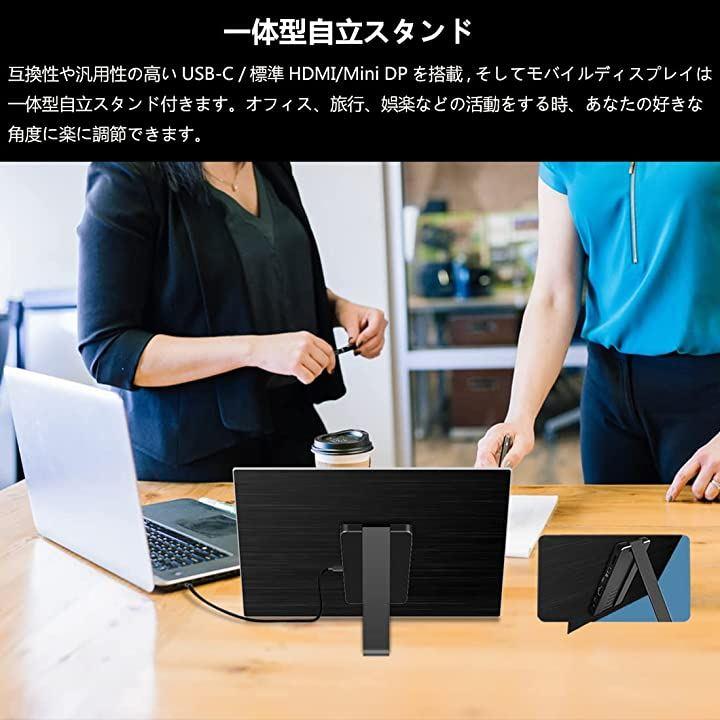 モバイルディスプレイ には豊富なポート、mini dp,標準hdmi、2つのUSB-Cポートが装備されており、互換性があり、シンプルで簡単な接続が可能です。