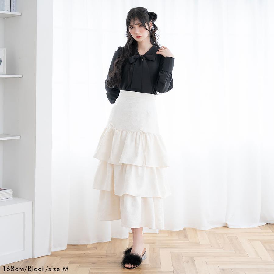 存在感のあるボウタイデザインがフェミニンな印象に導いてくれるアイテム。