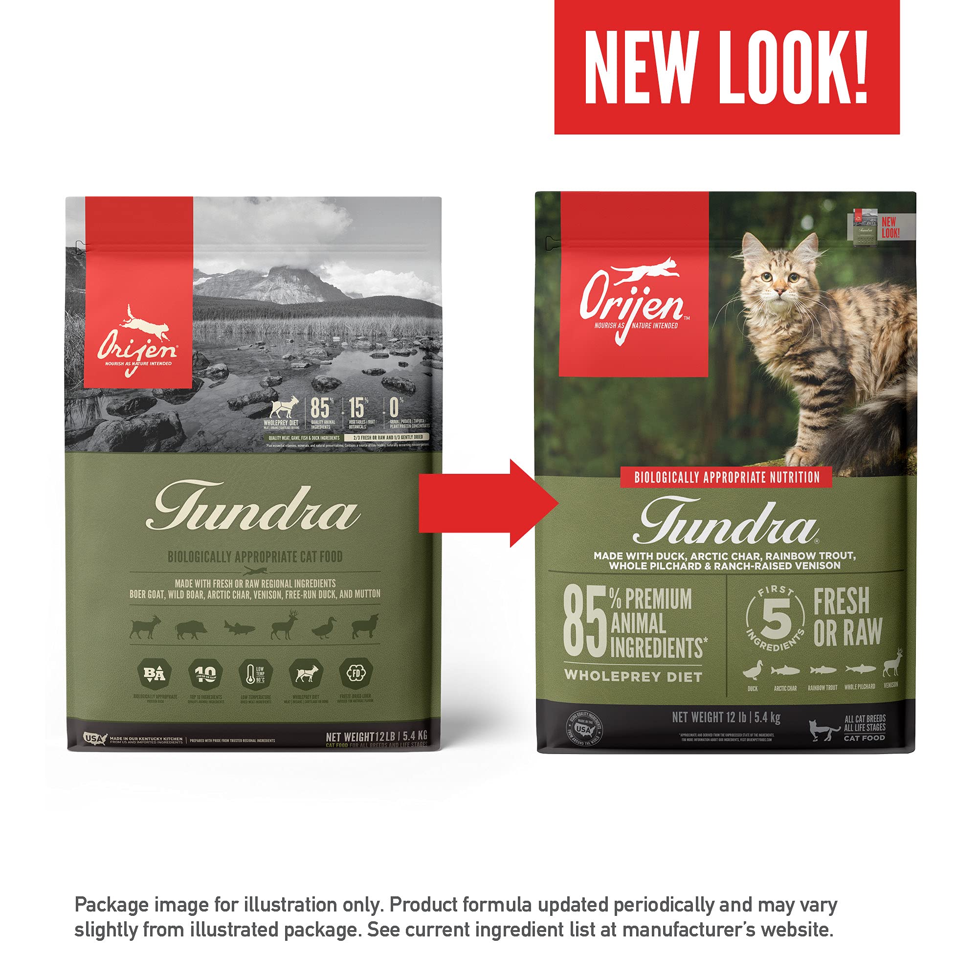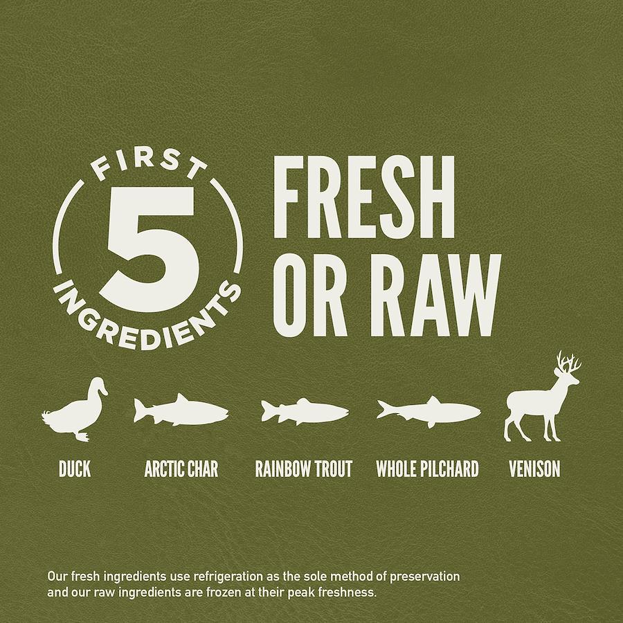 オリジンシリーズのツンドラは、ホールプレイ比率に見合うように新鮮なヤギやイノシシの肉、放牧で飼育された鹿肉、ホッキョクイワナ鴨肉、マトン肉、ニジマス、丸ごとのイワシの新鮮な状態で加工しており、食材の栄養と美味しさが凝縮されています。