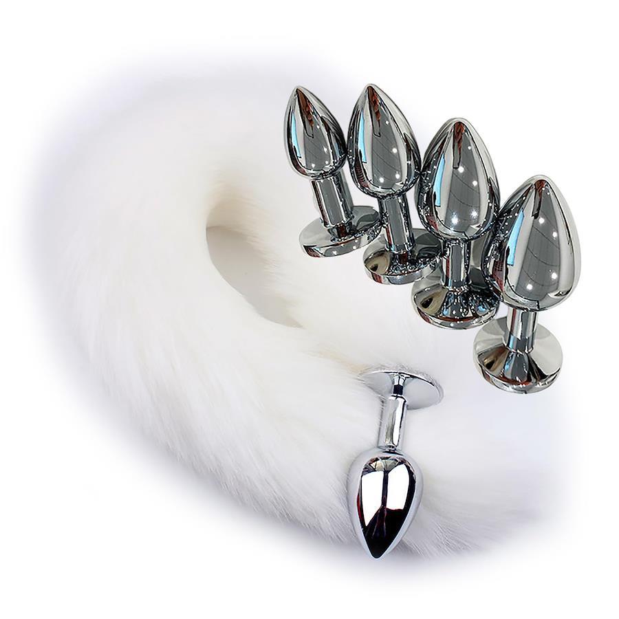 Orirya アナルプラグ 尻尾 大人のおもちゃ かわいい 猫 キツネ コスプレ セクシー SMプレイ アナル拡張 女性用 アダルトグッズ 男性用 smグッズ 仮装コスチューム アナルグッズ アナルストッパー 初心者 アナル開発 あだるとグッズ 女性 5個金属あなるぷらぐ 尻尾セット-ホワイト