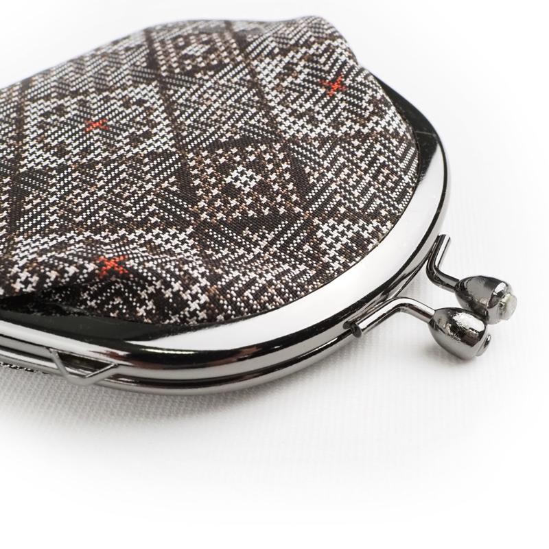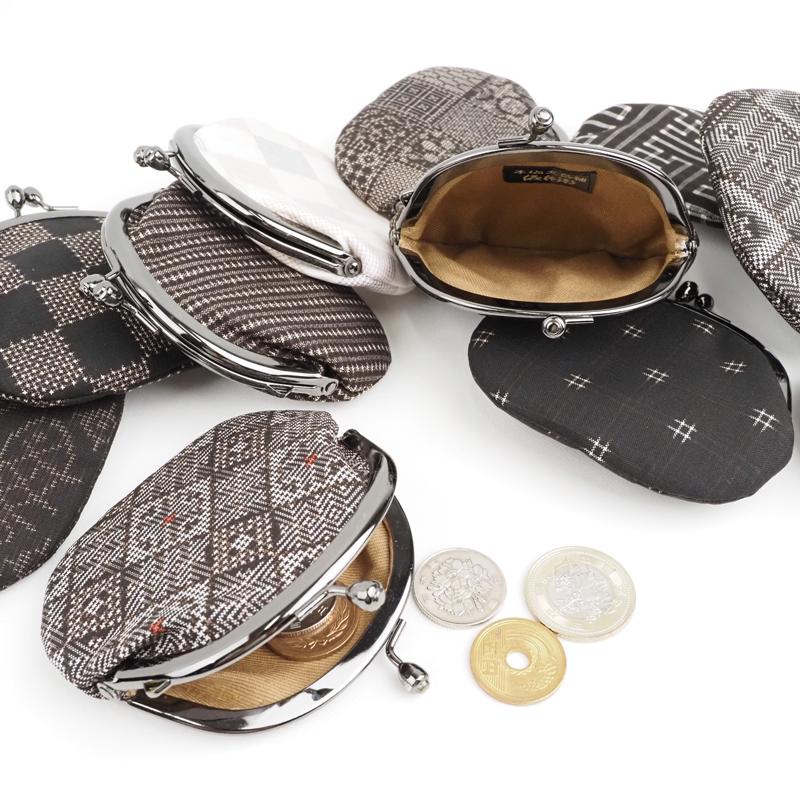 手のひらにすっぽりと収まる大島紬の小さながま口。シンプルながらも愛らしいデザインで、使うたびに気分があがるアイテムです。小銭やアクセサリーを入れて、お出かけのお供にぴったり。軽くて持ち運びやすいから、いつでもどこでも気軽に使えます。毎日の暮らしをちょっと楽しく彩る、あなたの新しいお気に入りになること間違いなし!【素材】表地:絹 裏地:綿 日本製【お手入れ方法】※ご使用や摩擦、水濡れ等によって色落ち、色褪せ、生地の擦れなどが生じます。※白や淡色には色移りする場合がございますのでお気をつけください。※ベンジン・シンナーなどのアルコール系溶剤の使用や、水で丸洗いすることはお止めください。【寸法】約9cm×約9cm(金具部分を含む) マチなし