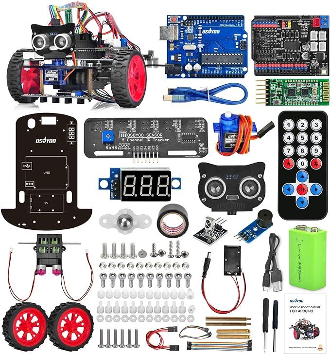 ■商品名OSOYOO Arduino用 モデル 3 V2.0 アルドゥイーノ DIYロボットカー キット UNO R3基板 モーターシールド ライントラッキング 超音波センサー Bluetooth IRリモートコントロール? バッテリー 充電器 日本語説明書