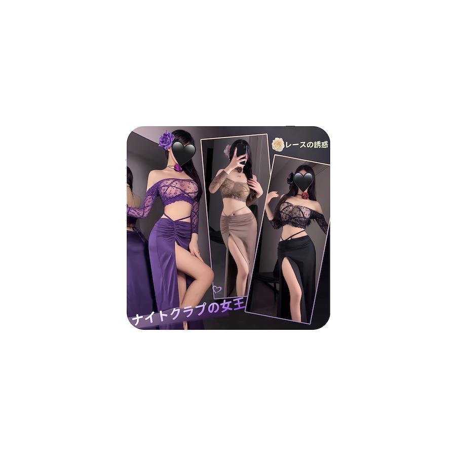 [oTVToCos] スリットスカート ロング レディース コスプレ セクシー エッチ エロ sm 過激 可愛い 誘惑 大胆 セクシーランジェリー レース ネックリング付き あだるとグッズ アダルトグ