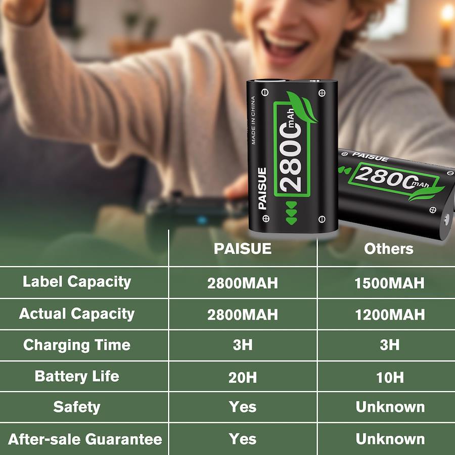 Xbox One/シリーズx/Elite/ X/ Sにも対応 電池 xbox 互換 コントローラー バッテリー (2個セット) 【対応機種】この バッテリー は xbox one /xbox one x/ xbox series x/ xbox one s/ xbox one elite /xbox series s 適しています。バッテリーを購入する前に型番をよくご確認願います。 【大容量】Paisue Xbox ?大容量バッテリーは他のバッテリーよりパワーがあります。グレードA+セルは、より長いバッテリ寿命と急速充電を保証し、最大1200回の高効率充電サイクルが利用可能です。より多くのバッテリー容量、より多くの使用時間。 【高性能】Xbox 充電池はメモリー効果がなく、セル全体が消耗するまで安定した電圧を提供します, 低自己放電、軽量、環境にやさしい。フル充電されたxboxバッテリーは20時間以上のゲーム時間を提供し、バッテリーパックは交互に使用することができます。 【高品質】100%新しい 0 サイクル 高品質 Xbox 電池、すべての電池は厳格な品質管理基準の下で、プロのテスターによってテストされ、過熱保護、過充電保護、過負荷保護、短絡保護、セーフガード保護。 【安心保証】24時間迅速な対応、30日間返金いたします。100%ご満足いただけない場合は、アマゾンでお気軽にお問い合わせください。