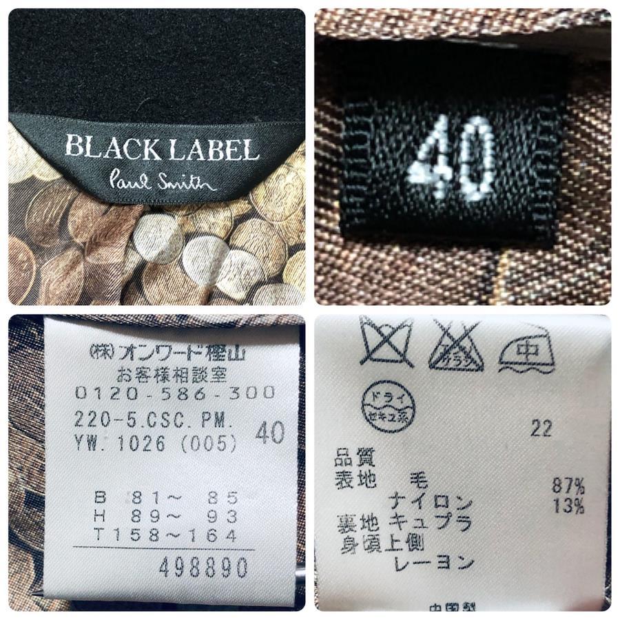 Paul Smith BLACKLABEL ポールスミスブラックレーベル ベルト付きステンカラーコート ウール87% size40(L) オンワード樫山 ブラック×裏地コイン柄 シングル レディース