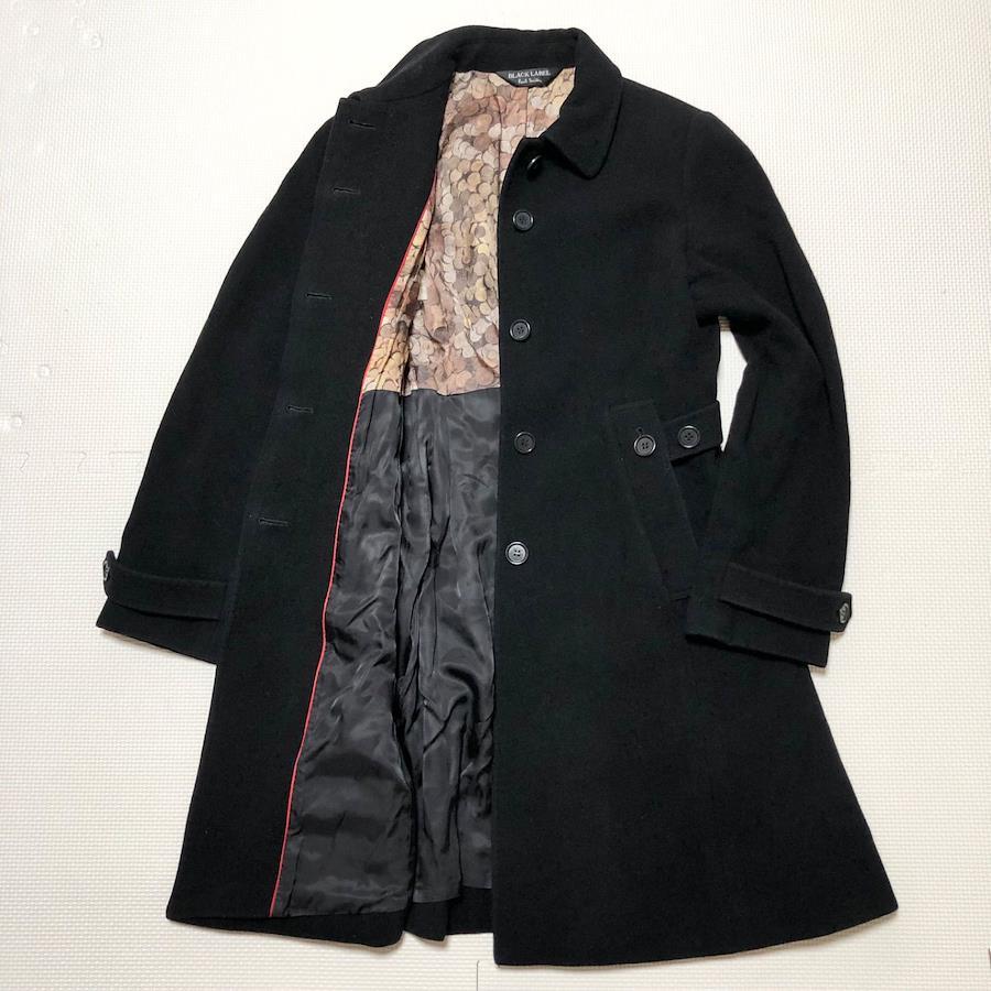 ■商品概要Paul Smith BLACKLABEL ポールスミスブラックレーベルベルト付き ベルテッドステンカラーコートウール87% size40(L) ※小さめのようです 詳細は下部寸法値を必ずご確認くださいオンワード樫山ブラック×裏地コイン柄シングルレディース