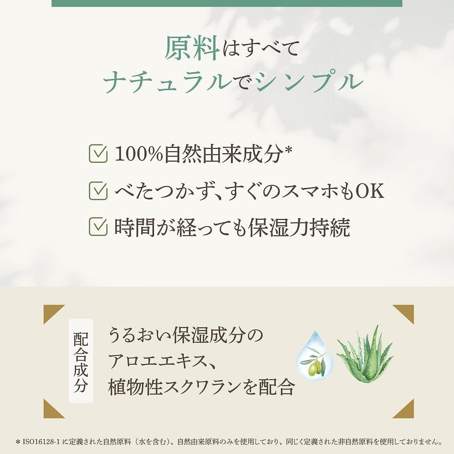 ●手肌のうるおいを保つアロエエキス、オリーブスクワラン配合。