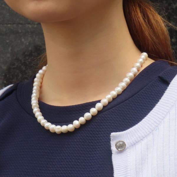 真珠の宝石言葉は『純粋・健康・長寿・富』。 母貝で異物から身を守り、内側で宝石を成すことから安産祈願のお守りにされることも。 母貝の中で真珠がその美しい輝きを放つ宝石となるまで、気の遠くなるような年月がかかります。 そのため、苦難を乗り越える事ができ、美しさに変える強力なパワーが宿っているといわれています。 また、貝の分泌物が幾重にも重なって出来ていることから、確固たる富をも象徴しているそうです。 健康も富も、古くから多くの人が憧れたもの。 さらに困難に打ち勝ち、退けるという意味でお守りとして選ばれることが多くあります。 ◆商品名 パールネックレス(PDT-391) ◆素材 留め具:シルバー925 スターリングシルバー ◆真珠の大きさ 7.5~8.5mm玉 ◆ストーン パール、真珠、本真珠、淡水パール、淡水真珠 ◆ネックレス長さ 35~60cmの中からお好みの長さをお選び下さい。 ◆付属品 ジュエリーBOX、ショップ袋、品質保証書 *プレゼント梱包出来ます ◆実店舗 Grand Galleria(グランドガレリア) JR帯広駅より徒歩5分の場所にある2012年オープンのフラッグシップショップ。 ジュエリー工房を併設し、常駐する職人自らと打ち合わせも可能なため、修理や加工、お客様のご希望に沿ったジュエリーもお作りすることが可能です。 ◆オススメ使用シーン ・様々な贈り物に プレゼント 贈り物 誕生日 誕プレ 誕生日プレゼント バースデー バースデイ 御祝 御祝い お祝い 母の日 父の日 クリスマス クリスマスプレゼント Xmas 春夏秋冬 成人 成人式 卒業 卒業式 進学 就職 入学 金婚式 銀婚式 出産 結婚 開店 開業 定年退職 退職 移動 転勤 バレンタイン バレンタインデー バレンタインデイホワイトデー ホワイトデイ ごほうび ご褒美 御褒美 ・想いを込めて ありがとう 感謝 ごめんなさい 許して ごめんね よろしく おめでとう おめでとうございます 仲直り ・こんな方に 自分 彼女 彼氏 大切な人 大切な方 お父さん お父様 父親 親父 父 お母さん お母様 母親 母 兄弟 姉妹 子供 おばあちゃん 祖母 おじいちゃん 祖父 奥さん 妻 旦那 旦那さん 先生 生徒 職場 先輩 後輩 上司 部下 同僚 友達 友人