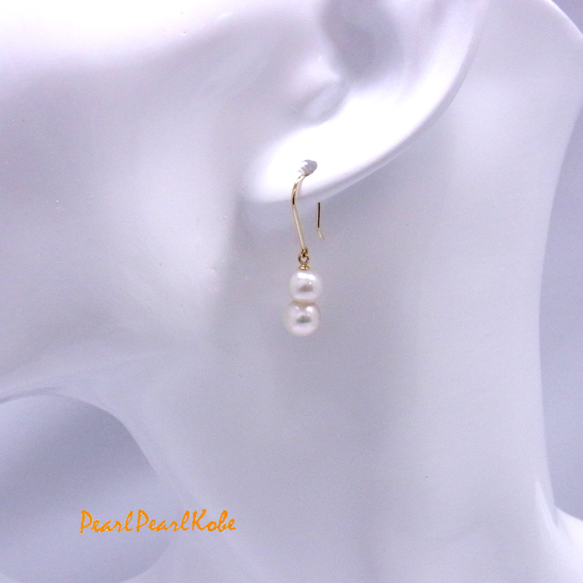 双子の日本産アコヤ真珠のイヤリングです。双子の真珠は、アコヤ貝の中で自然に結合し希少価値があります。イヤリングは、フックタイプのK18YGピアスです。ツインパールは、真珠層が厚く、輝きが強く、色はグレーです。サイズは、幅が6-7mm.で、縦は12-14mm.になります。