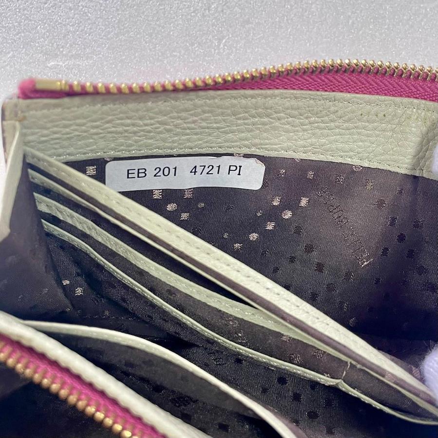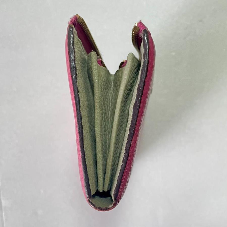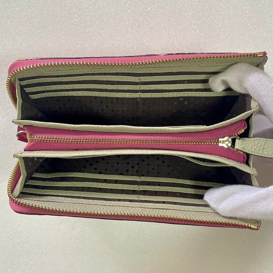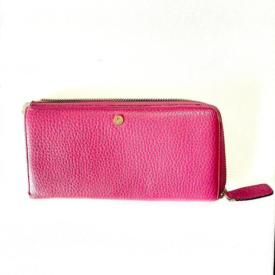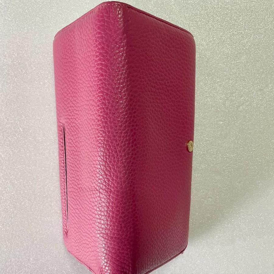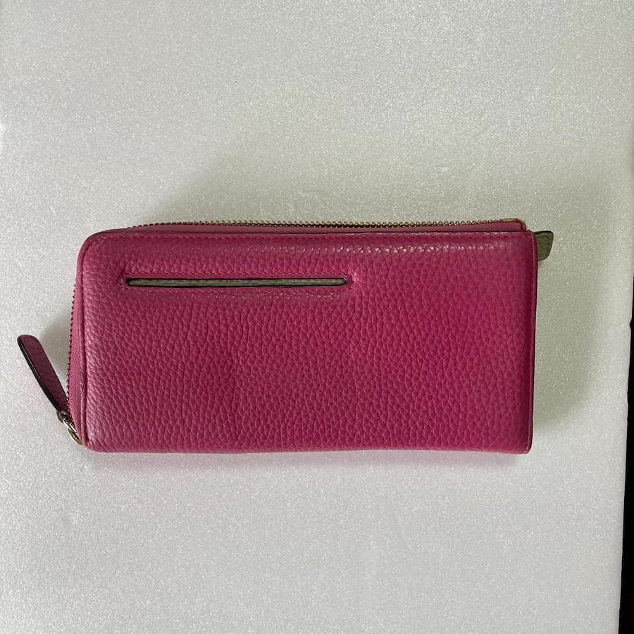 ☆こちらの商品はUSED品ですので新品や未使用品をお求めの方はご遠慮ください。鮮やかなピンクのレザー長財布、2つのコンパートメント付き。