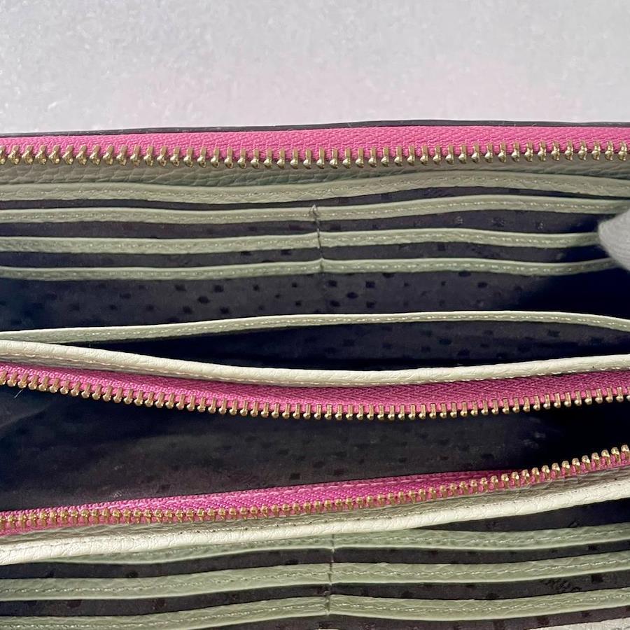 - 色: ピンク- 内部構造: 2つの大きなコンパートメントとストライプの内装- ファスナー: 全周ファスナー- 素材: レザー