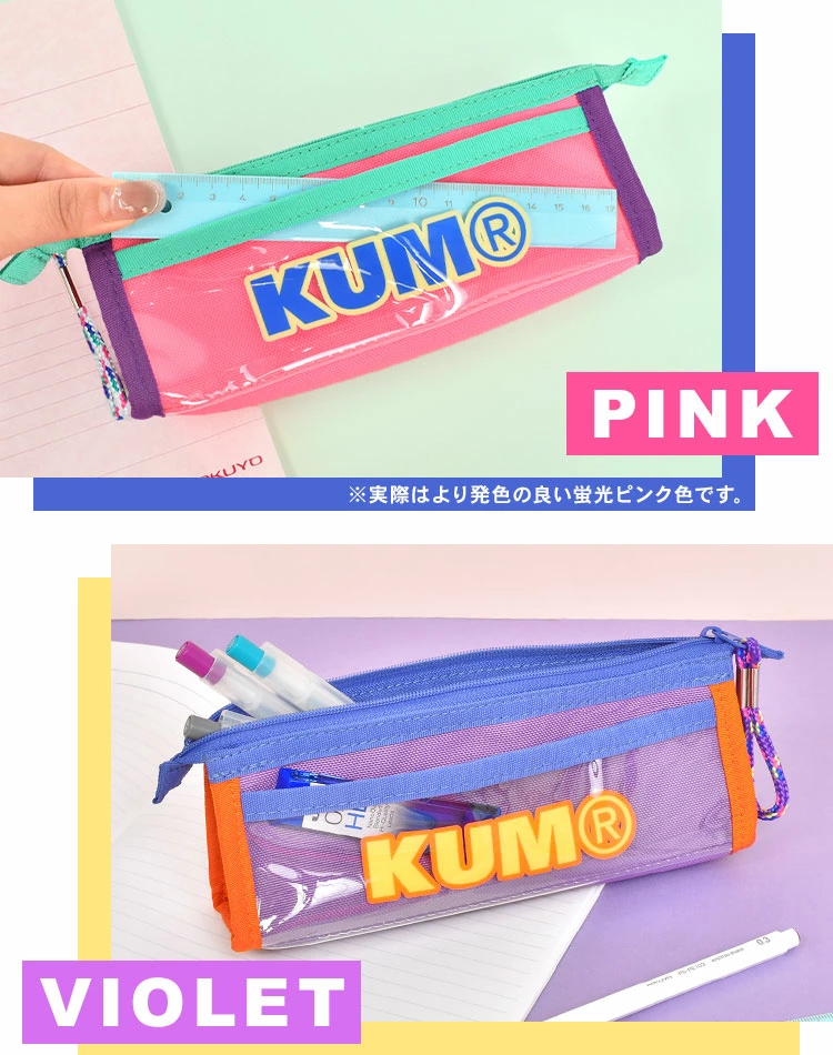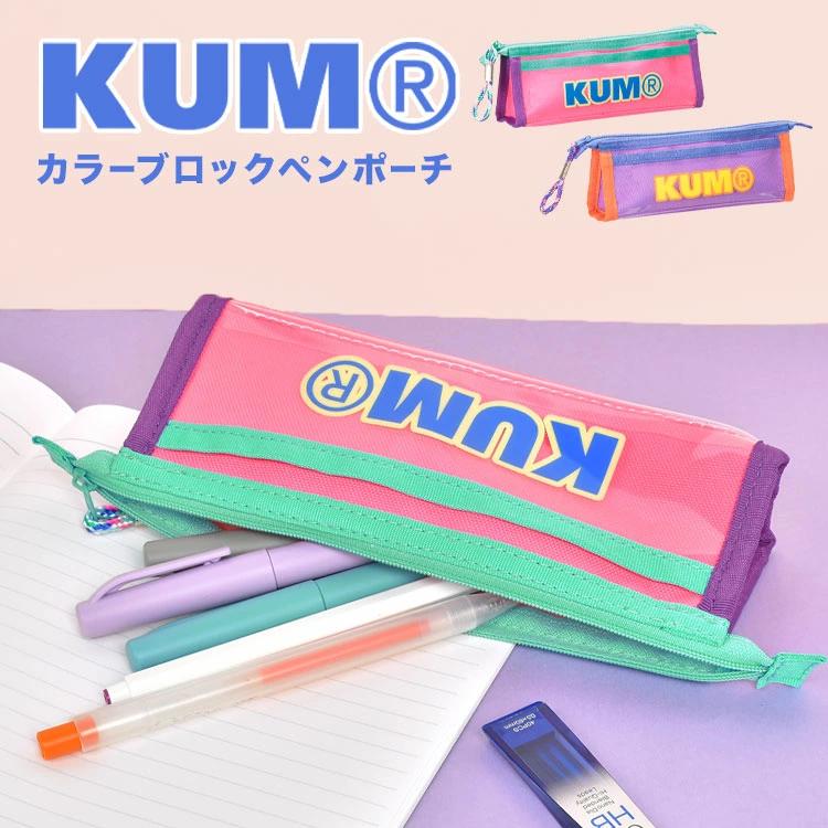 【カラーブロックペンケース】ドイツ発の人気のステーショナリーブランド「KUM」_から軽量でスポーティーなデザインのペンケースが登場! 懐かしさを感じるレトロ感と、気分が上がる配色がポイントの、Y2Kをテーマにしたペンケースです♪ 外側にはクリアのフロントポケット、内側にはメッシュポケットが付いているので、小さなアイテムも探しやすい◎マチ付きでたくさん入ります♪