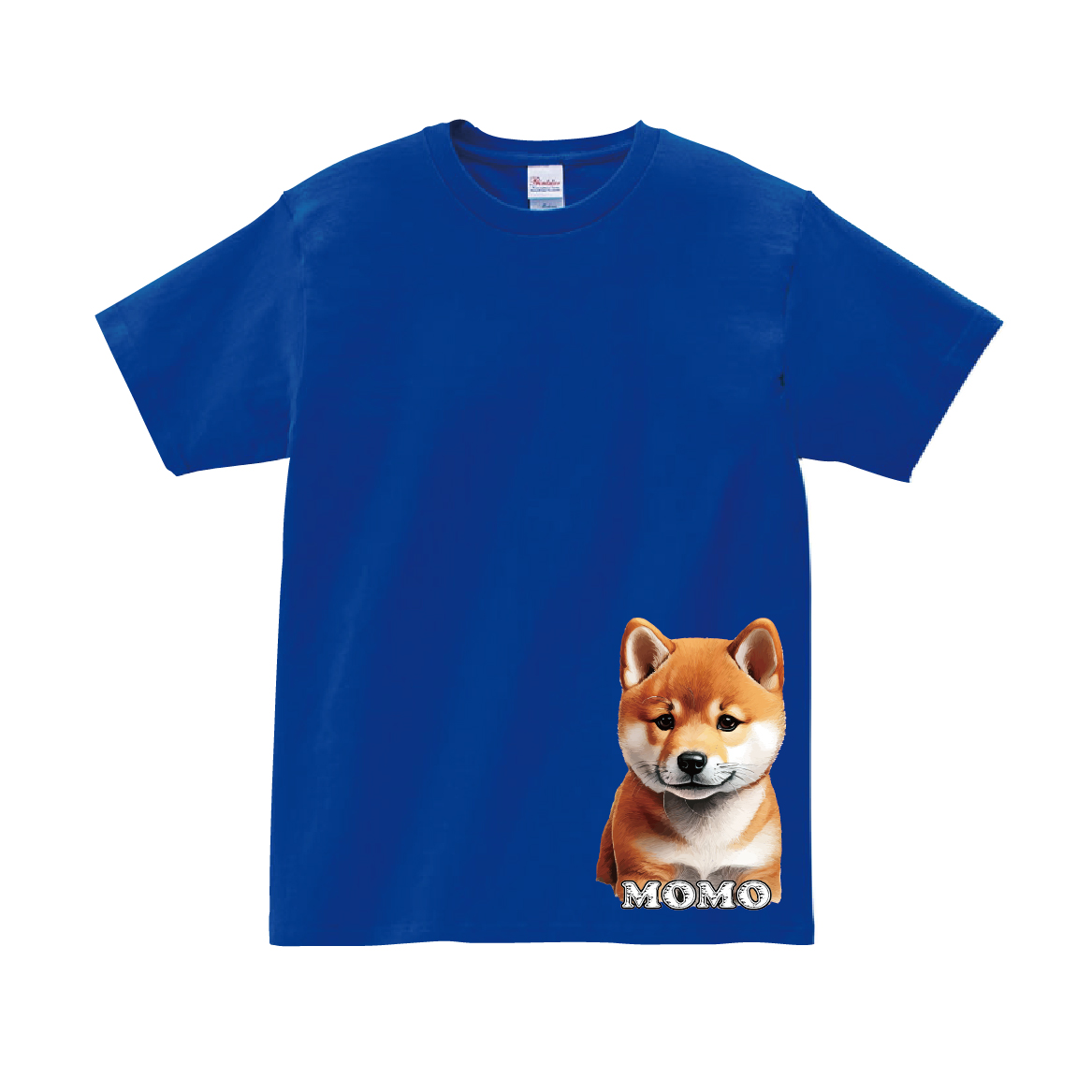 名入れのできるデッサン風の柴犬の子犬Tシャツです。「MOMO」の部分をお好きなアルファベットに変更できます。※画像ははめ込み画像となり、実際とは多少異なりますので予めご了承ください。 ※サイズ表をよくご確認の上ご購入ください。 ※受注生産となるため、返品、交換はご遠慮ください。