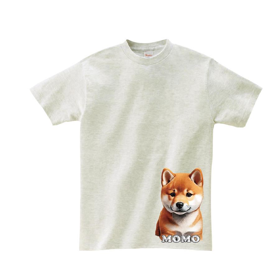 名入れのできるデッサン風の柴犬の子犬Tシャツです。「MOMO」の部分をお好きなアルファベットに変更できます。※画像ははめ込み画像となり、実際とは多少異なりますので予めご了承ください。 ※サイズ表をよくご確認の上ご購入ください。 ※受注生産となるため、返品、交換はご遠慮ください。