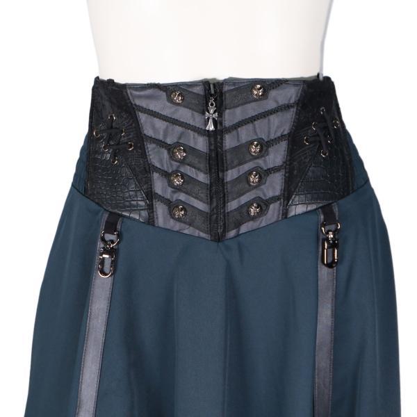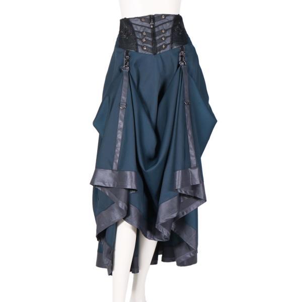 永久に紡ぐ、幻影の残響の世界漂うクローチェのロングSK!!脇はシャーリング仕様の為、容易に着脱いただけます。後身のレースアップで、お好みでサイズ調整いただけます。スカート内側にテープを縫い付けており、お好みでデザインアレンジをお楽しみいただけます。ロング丈の為、日常で使用し易く、様々なコーディネートにも併せ易い為、大変おすすめのアイテムになります。