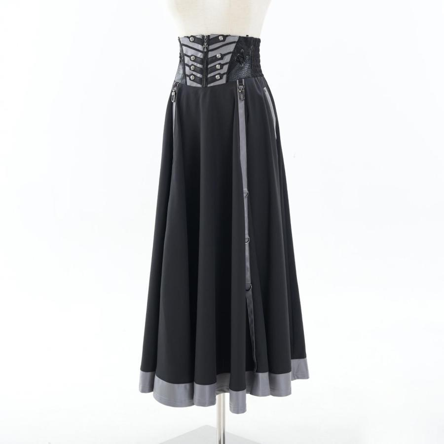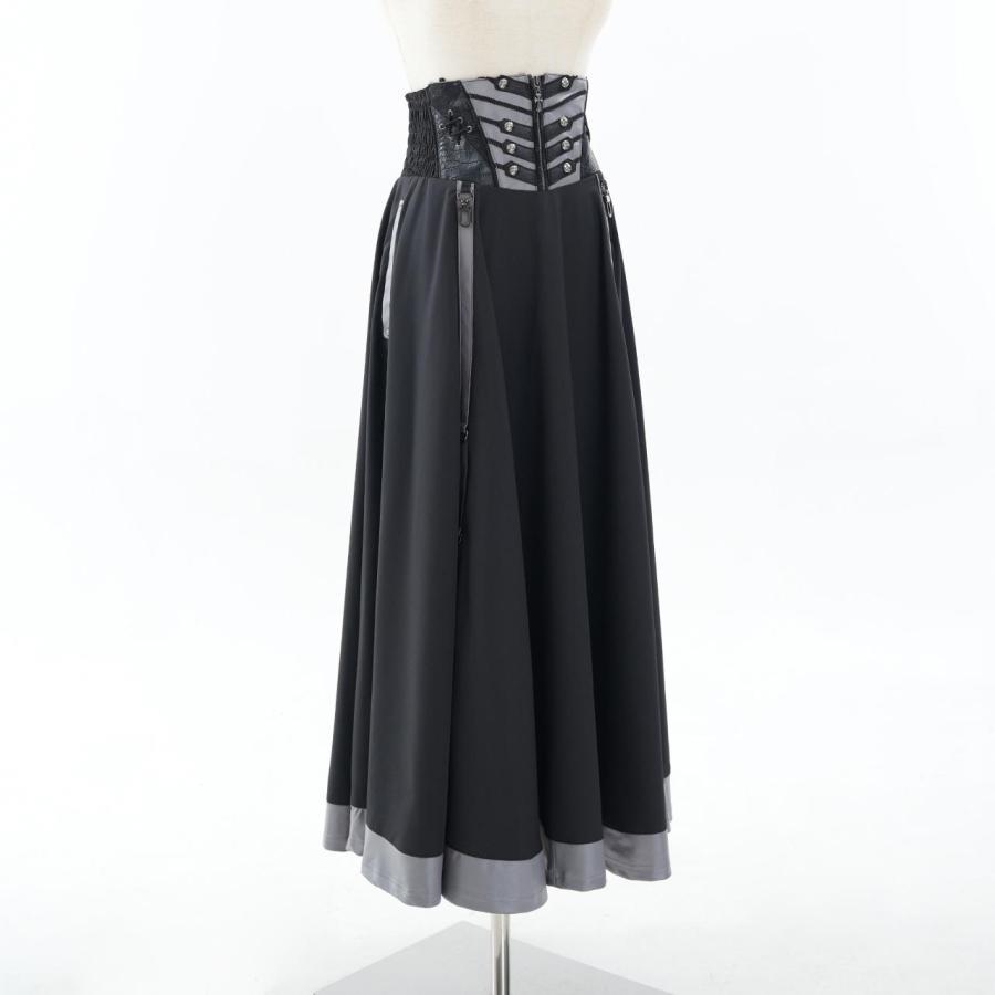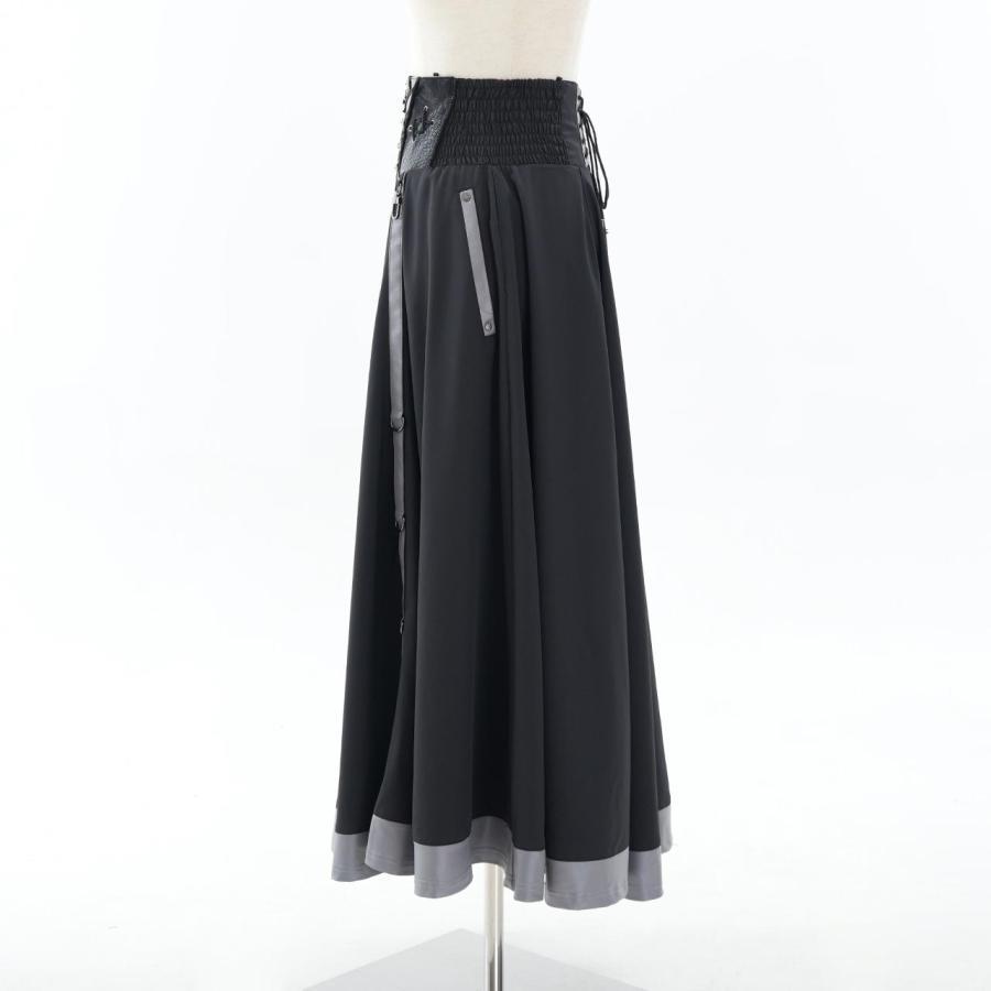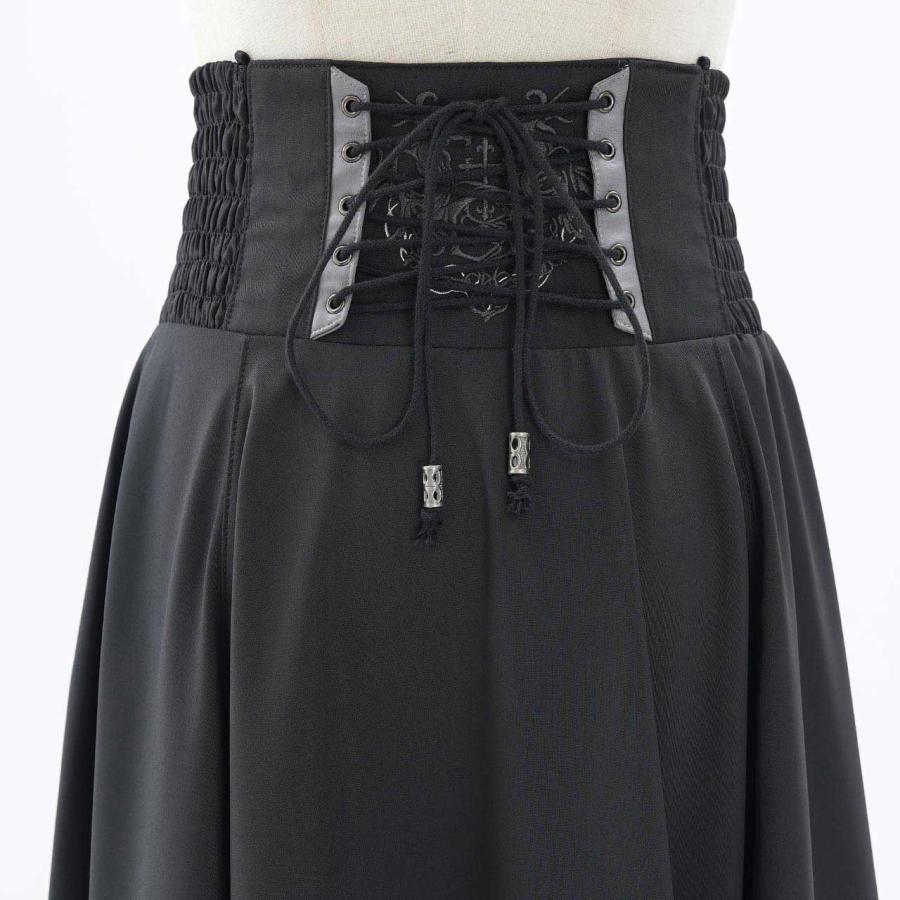 永久に紡ぐ、幻影の残響の世界漂うクローチェのロングSK!!脇はシャーリング仕様の為、容易に着脱いただけます。後身のレースアップで、お好みでサイズ調整いただけます。スカート内側にテープを縫い付けており、お好みでデザインアレンジをお楽しみいただけます。ロング丈の為、日常で使用し易く、様々なコーディネートにも併せ易い為、大変おすすめのアイテムになります。