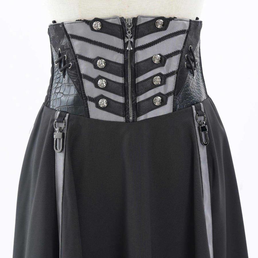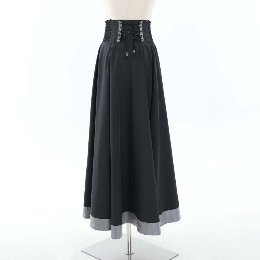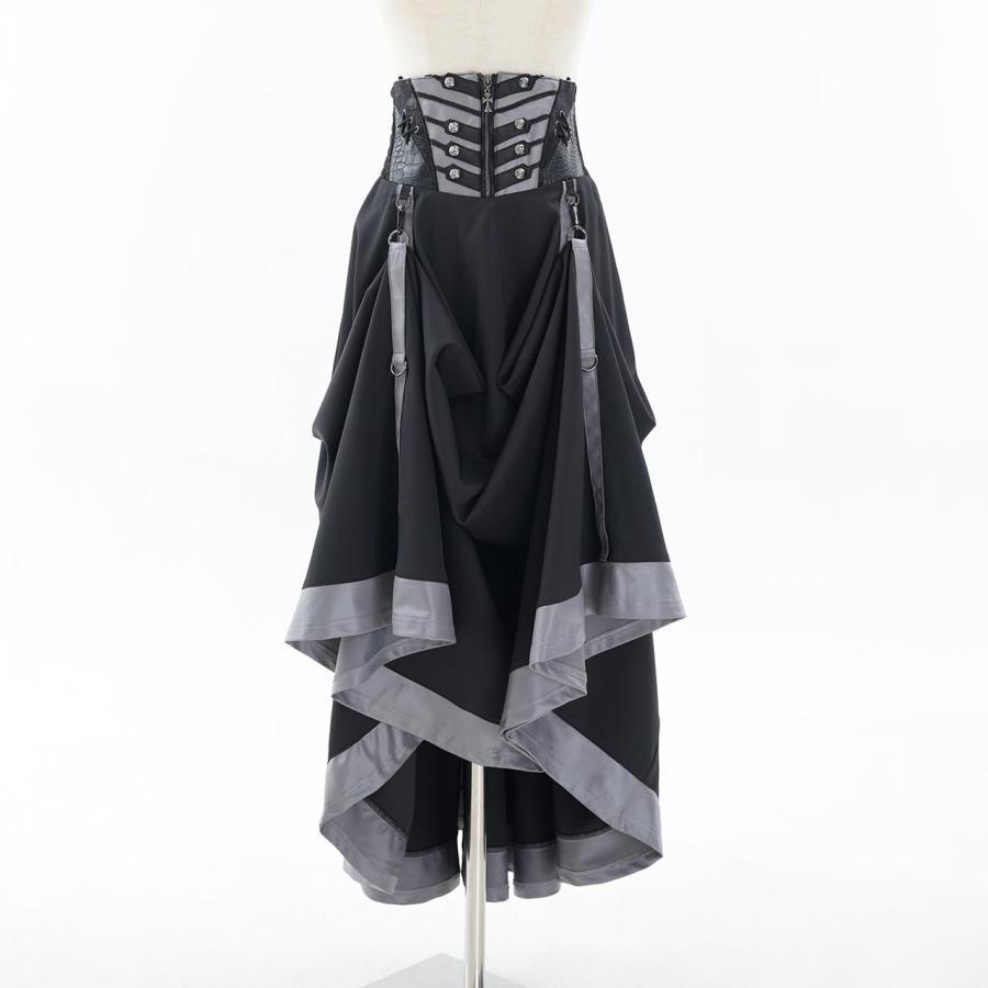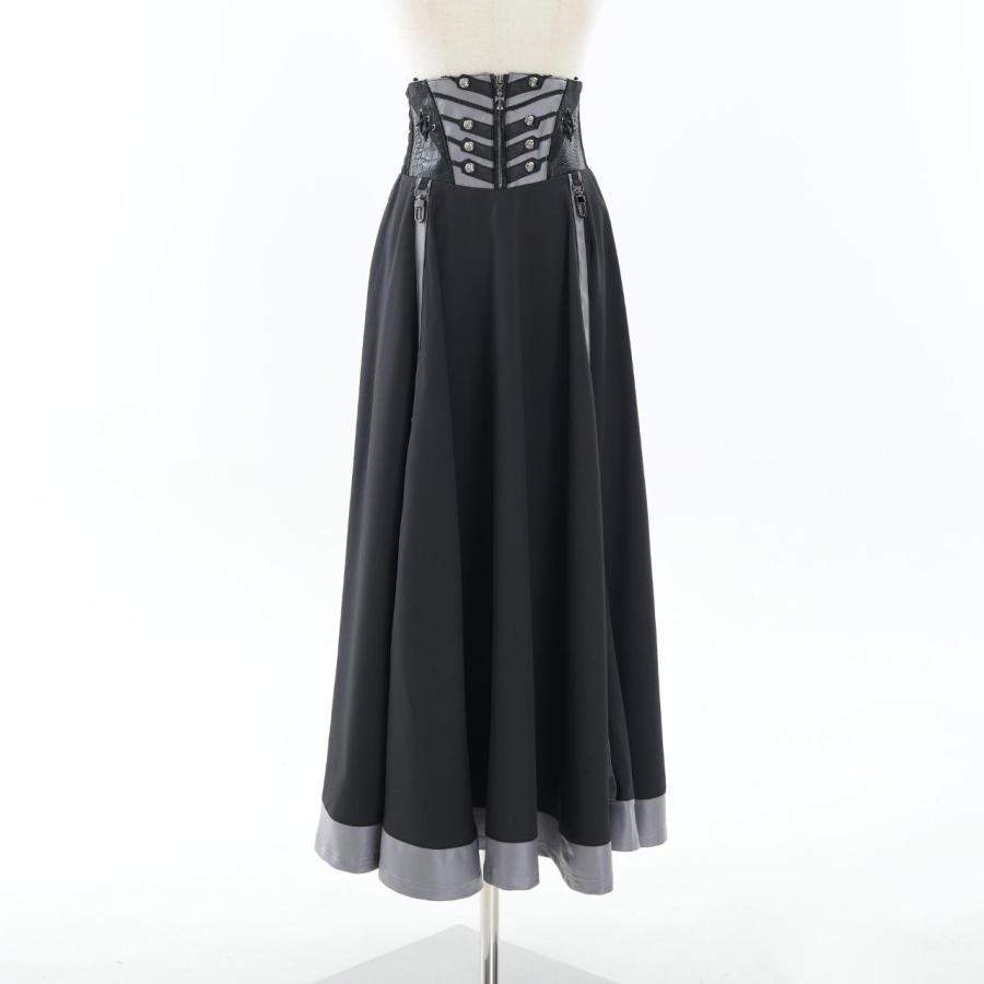 永久に紡ぐ、幻影の残響の世界漂うクローチェのロングSK!!脇はシャーリング仕様の為、容易に着脱いただけます。後身のレースアップで、お好みでサイズ調整いただけます。スカート内側にテープを縫い付けており、お好みでデザインアレンジをお楽しみいただけます。ロング丈の為、日常で使用し易く、様々なコーディネートにも併せ易い為、大変おすすめのアイテムになります。
