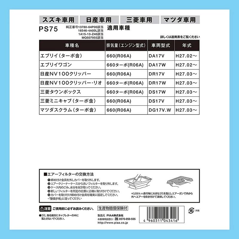 ■該当純正品番:【13780-64P00】【16546-4A00L】【1A15-13-Z40】【MQ507955】■製品コード:PS75■メーカー:PIAA