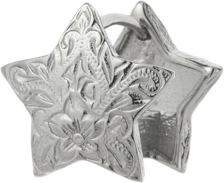 ハワイアンモチーフを贅沢に詰め込んだ スター型のフープピアスです。