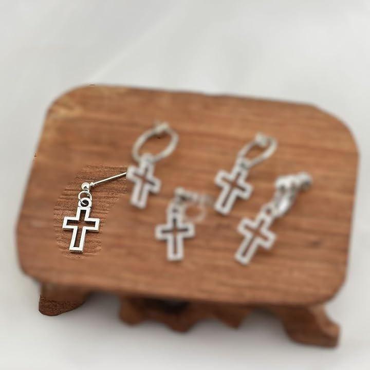 「サイズ/素材」ピアス全長:約2.6cm , クロスsize:1.5cmx1cm / 素材:合金