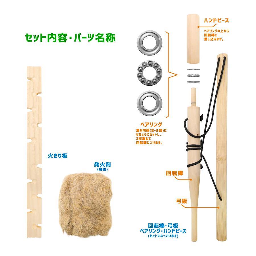 セット内容・ハンドピース:1・火きり板:1・発火剤(麻紐):1