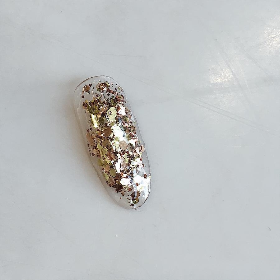 様々なサイズのホロやラメが入ったグリッターの為、均等に混ぜてからお好みの量をクリアジェルとミキシングしてご使用下さい。
