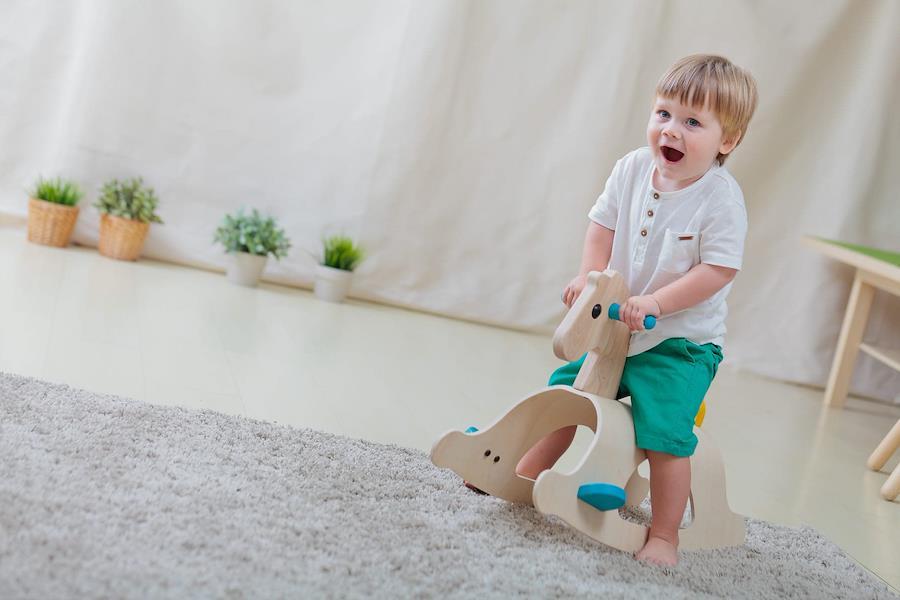 クラシック調べのパロミノ。サドルがあり、平行なロッカー式なので、子供たちは前後に揺らしながらバランスを取って楽しめます。