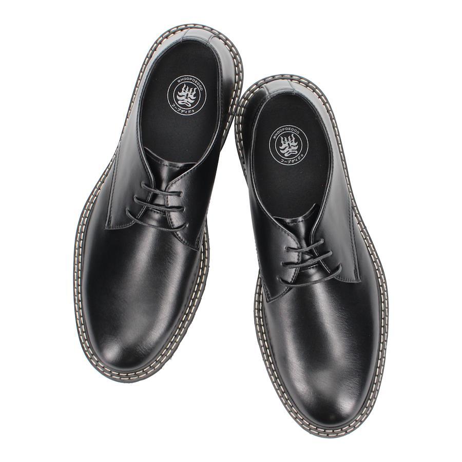| ---フープディドゥ--- これまでフープディドゥが生み出したアイコニックなデザインを最新のトレンドとクロスオーバー 世代や性別の垣根を越えブランドを幅広く認知してほしい思いを込めて カタカナ表記「フープディドゥ」シリーズをラインアップしました 厚底タンクソール・ダービーシューズ 【素材】 人工皮革とも呼ばれ、とても柔らかく本革に近い見た目と質感が魅力の素材です。 他の合成皮革に比べ劣化しづらく通気性も良い上に、自然な撥水性があるのでお手入れし易いといった特徴もあります。 本革に次いで、合成皮革の中では高級品に分類される注目の素材です。 【デザイン】4cmの厚みがあるプラットフォームソールを使用したダービーシューズ。 アッパーには人工皮革を使用している為、お手入れもしやすく気軽に履きやすいのがうれしい。 また発色の良い素材の為、デザインにマッチしたソリッドな仕上がり。 アウトソールは軽量かつクッション性ののあるEVAを採用している為、厚底シューズにありがちな「重くて硬い」ストレスを解消。 スニーカー感覚で気軽に着用ができます。 また、ソール周りはダブルステッチ仕様のウェルトパーツを採用し、シンプルながらもインパクトあるディテール。 蒸れやすいインナーには、吸汗性の高いマイクロファイバーを使用し、快適に履ける1足に仕上げています。 【サイズ】 ※革靴で25.5cm、スニーカーで26.5-27cmを着用のスタッフで<41/25.5cm>でジャストサイズでした。 ※サイズ感は個人差がございますので参考程度にお考え下さい。 ■ブランド:フープディドゥ ■カラー:ブラック、ホワイト ■アッパー素材:人工皮革 ■裏地:生地 マイクロファイバー(吸汗) ■底材:EVA ■ヒール:約4cm ■重さ(片足):約481g ■製法:セメント製法 ■中国製 *上記は全て25.5cmで計測した数値です。 *多少の誤差が生じる場合がございますので予めご了承下さい。 whoop de doo co.,ltd whoop'-de-doo' フープディドゥ |