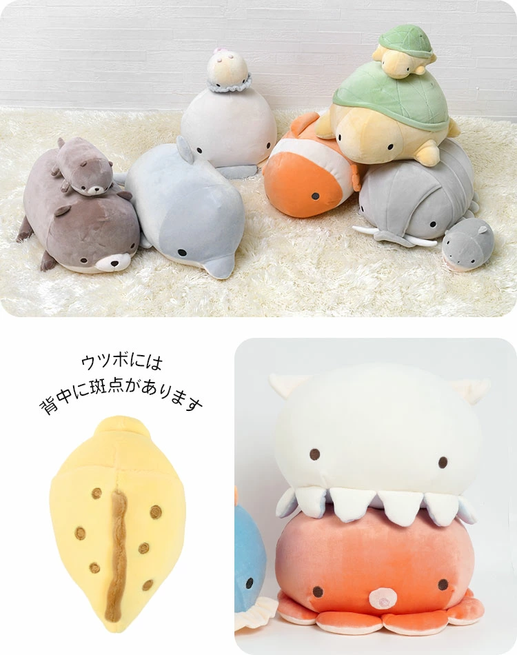 ■サイズ約W15×D27×H14cm▼一部の子はが違います。・メンダコ:約W24×D22×H20cm・ハコフグ:約W22×D22×H19cm・クラゲ:約W20×D20×H13cm・カメ:約W20×D27×H16cm・ダイオウグソクムシ:約W15×D27×H14cm・イカ:約W20×D17×H18cm・タコ:約W19×D19×H17cm・ウツボ:約W18xD34xH15cm・ジンベエザメ:約W19xD29xH15cm※表記サイズより、多少の誤差があることがございます。