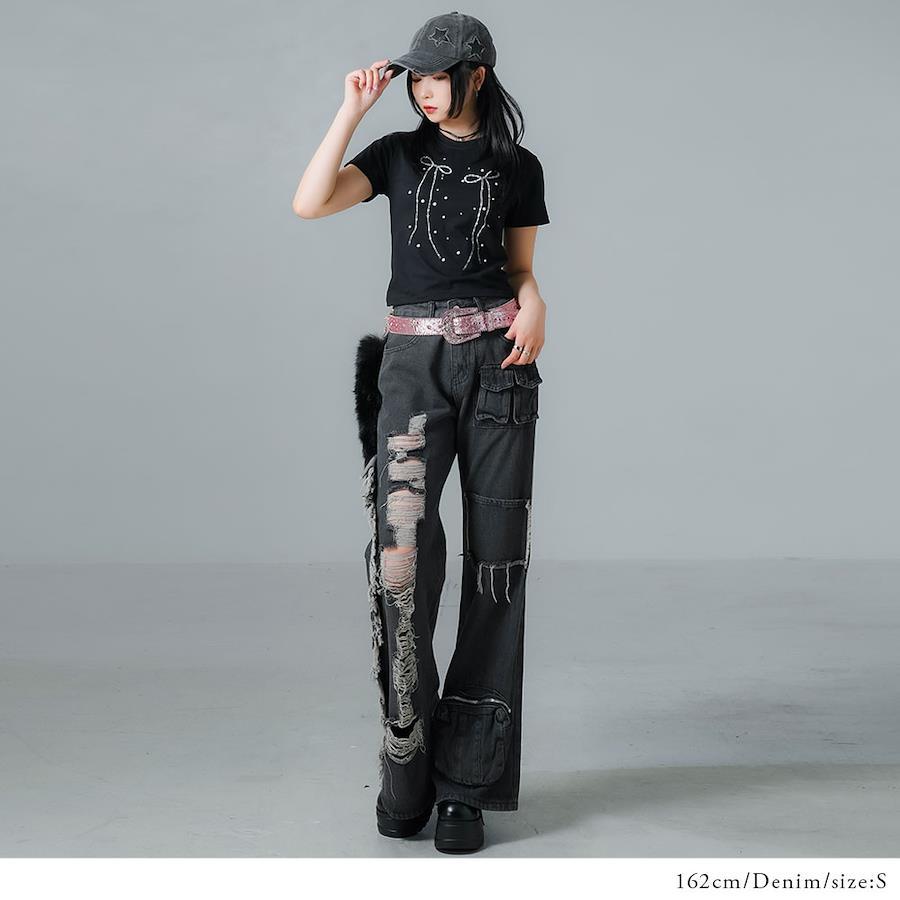 ◆Designダメージ加工やポケットがついたデザインでコーデ映え◎ラフに着やすいデニムパンツ。