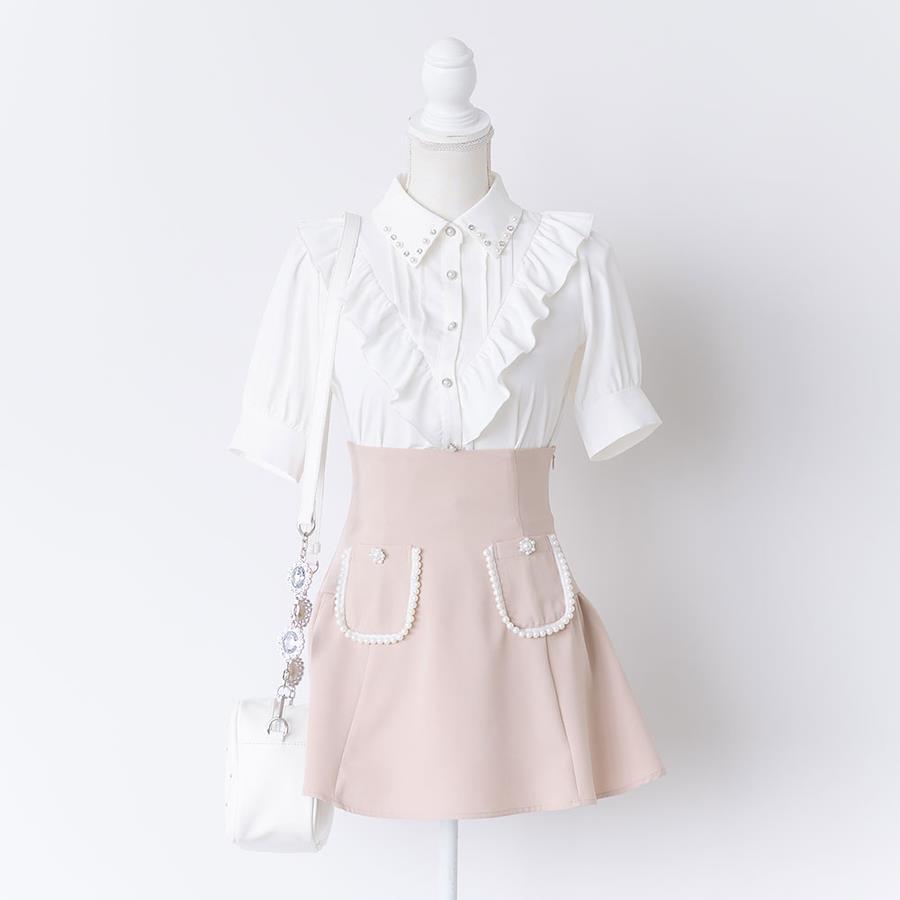 ふんわりと広がるシルエットが印象的なデザイン。ポケットの縁に施された華奢なファーと大粒なパールがとびきり可愛い至極のアイテム♪ウエストの切替部分をなくしハイウエストに仕上げたことで、履くだけでスタイルアップが叶うのもMillorならではのポイントです。色違いで持っておいても重宝していただけるカラー展開でご用意しています。