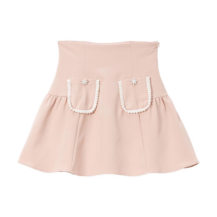 ふんわりと広がるシルエットが印象的なデザイン。ポケットの縁に施された華奢なファーと大粒なパールがとびきり可愛い至極のアイテム♪ウエストの切替部分をなくしハイウエストに仕上げたことで、履くだけでスタイルアップが叶うのもMillorならではのポイントです。色違いで持っておいても重宝していただけるカラー展開でご用意しています。