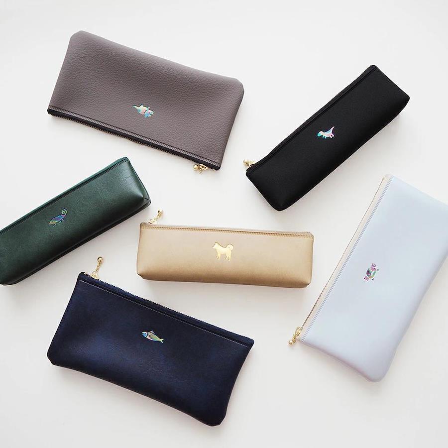人気のワンポイントモチーフを箔押ししたペンケースの新柄が登場!恐竜やウーパールーパー、サバなど、ちょっと変わった生き物が勢揃い!
