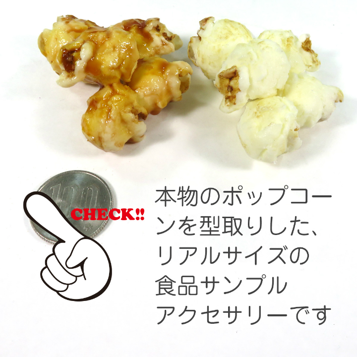 本物のポップコーンそっくりに作られた食品サンプルのアクセサリーです。