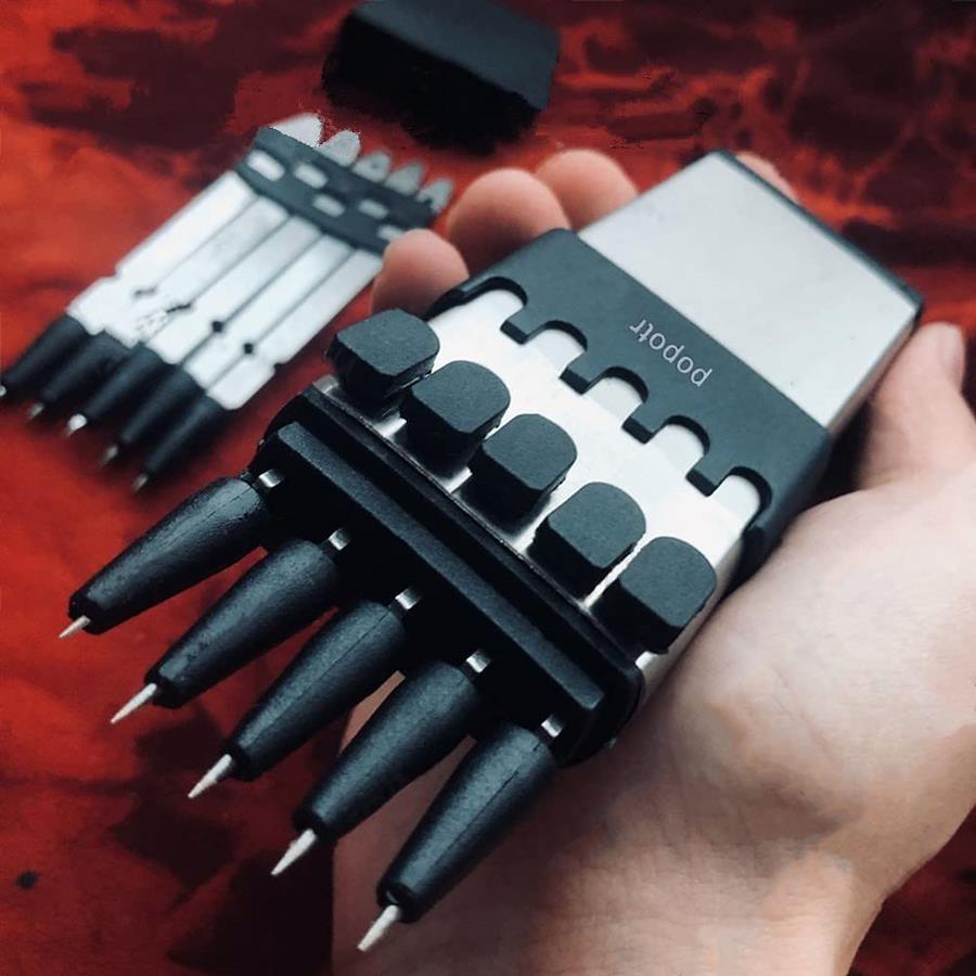 このデバイスをリロードするには、ダーツを入れて、デバイスの背面に大部分のあなたの体重を置くまで、彼らは場所にロックします。各々のダーツは440 Cステンレス鋼の固体部分から造られます。そして、余分のダーツを含みます。20フィートで正確ですが、30 +フィートに到達する問題はありません。保護カラーは「安全性」として機能し、プルダウンしない限り、発射しない