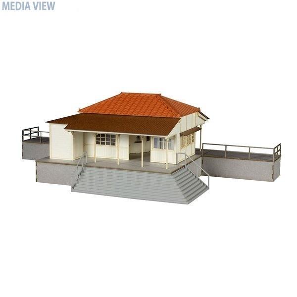 プラム 1/80 駅舎[Type 小湊鐵道] プラモデル PP107 ペーパーとプラスチックのハイブリッドキットにて、1/80スケールの駅舎が出来上がりました!ドラマロケで有名な上総鶴舞駅や海士有木駅など「小湊鐵道」に多く現存するタイプの駅舎を1両分のホームと共に製品化しています。窓枠や柱を始めとする、ペーパーならではの精密な表現はストラクチャーとしての枠を超え、純粋な木造建築の建築模型としても楽しむことができます。パーツは色分けされており、組み立てるだけで実感的な駅舎が完成します。道床付きレールに併せたホーム高なので、御座敷レイアウトでのローカル駅として活躍すること間違いナシ!多彩な車両とあわせてお楽しみ下さい。ベンチと駅名版付きです。全高:約90mm(1/80スケール)ペーパー/プラスチックキット※組み立て・塗装の必要なキットです。完成品ではございませんのでご注意ください。※商品の画像は実際の商品と異なる場合が御座います。