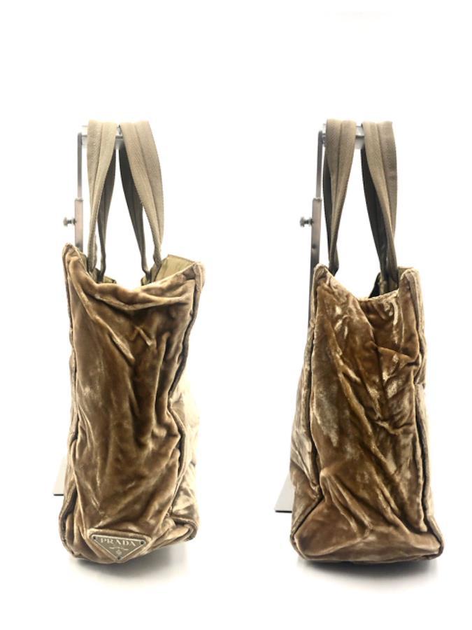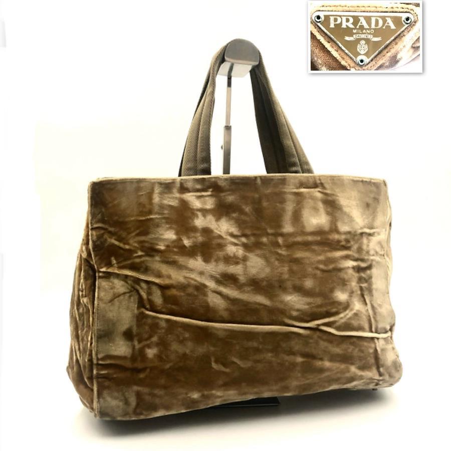 ■商品概要PRADA プラダベロア素材トートバッグ三角プレートイタリア製布タグあり底鋲ベージュ系ラグジュアリー 高級 ハイブランド