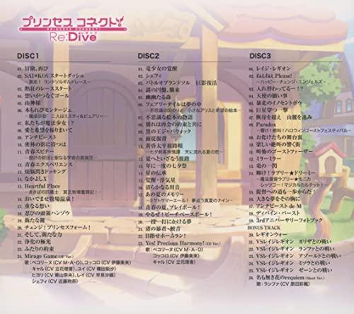 【収録内容】DISC101 .冒険、再び02.SAI*KOUスタートダッシュ -激走! ランドソルギルドレース-03.熱狂のレーススタート04.想いがつなぐゴール05.山神様06.木もれびモンタージュ -魔法少女 二人はミスティ&ピュアリー-07.私たちが魔法少女! ?08.愛と希望を振りまいて09.アンチビースト10.密林の影に待つは11.青春スピナー -授けの財団と聖なる学舎の異端児-12.青春エクスペリエンス13.煩悩閃きドッキング14.なかよしX15.Heartful Place -まきばの四農士 貧乏牧場奮闘記! -16.おいでませ牧場温泉!17.重なる想い18.忍びの頭領ハンゾウ19.新たな鍵20.チェンジ! プリンセスフォーム!21.そして、新たな力22.浄化の極光23.ふたりの約束24.Mirage Game(OP Ver.)歌:ペコリーヌ(CV M・A・O)、コッコロ(CV 伊藤美来)、キャル(CV 立花理香)、ユイ(CV 種田梨沙)、ヒヨリ(CV 東山奈央)、レイ(CV 早見沙織)、シェフィ(CV 近藤玲奈)