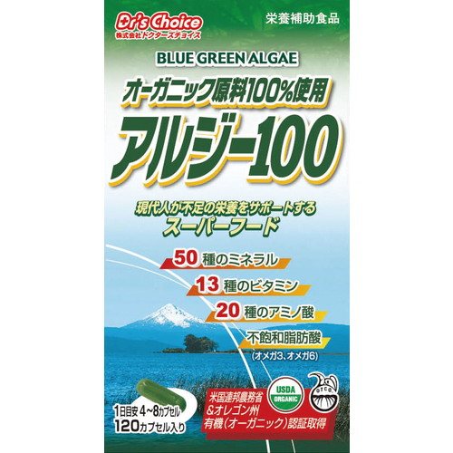 ■商品名:アルジー100■内容量:34.8g(290mg×120カプセル)■原材料:ブルーグリーンアルジー(アメリカオレゴン州産)、HPMC(植物由来)■賞味期間:常温で2年■USDA認定原料使用■ブルーグリーンアルジーはアメリカオレゴン州のみに自生する藍藻類■50種類のミネラル、13種のビタミン、4種の脂肪酸、20種のアミノ酸、2種の色素含有■低温スプレードライ■植物性カプセル入り■1日4?8カプセルを目安に4.33kcal/4カプセル ≪ご注意:必ずお読み下さい≫・配送業者について、佐川急便、ゆうパックのいずれかで送らせていただきます。・北海道・沖縄県・離島へ発送の場合は、別途送料をご請求させていただきます。・1万5000円以上お買上で北海道・離島への発送を無料に、2万円以上お買い上げの場合は全国無料となっております。・配送する内容によって、お送りする業者を指定する場合がございます。 (※詳しい配送金額についてはこちらをご覧ください) ・上記以外の発送をお客様より指定を受けた場合、指定料金や送料を実費でいただきます。 ・同時に送料別の商品をご購入いただいた場合、同梱が可能な商品の場合はとなりますが、やクール便、直送便は別途送料をいただきます。(同時発送、同一箇所発送の場合のみ適用です。)