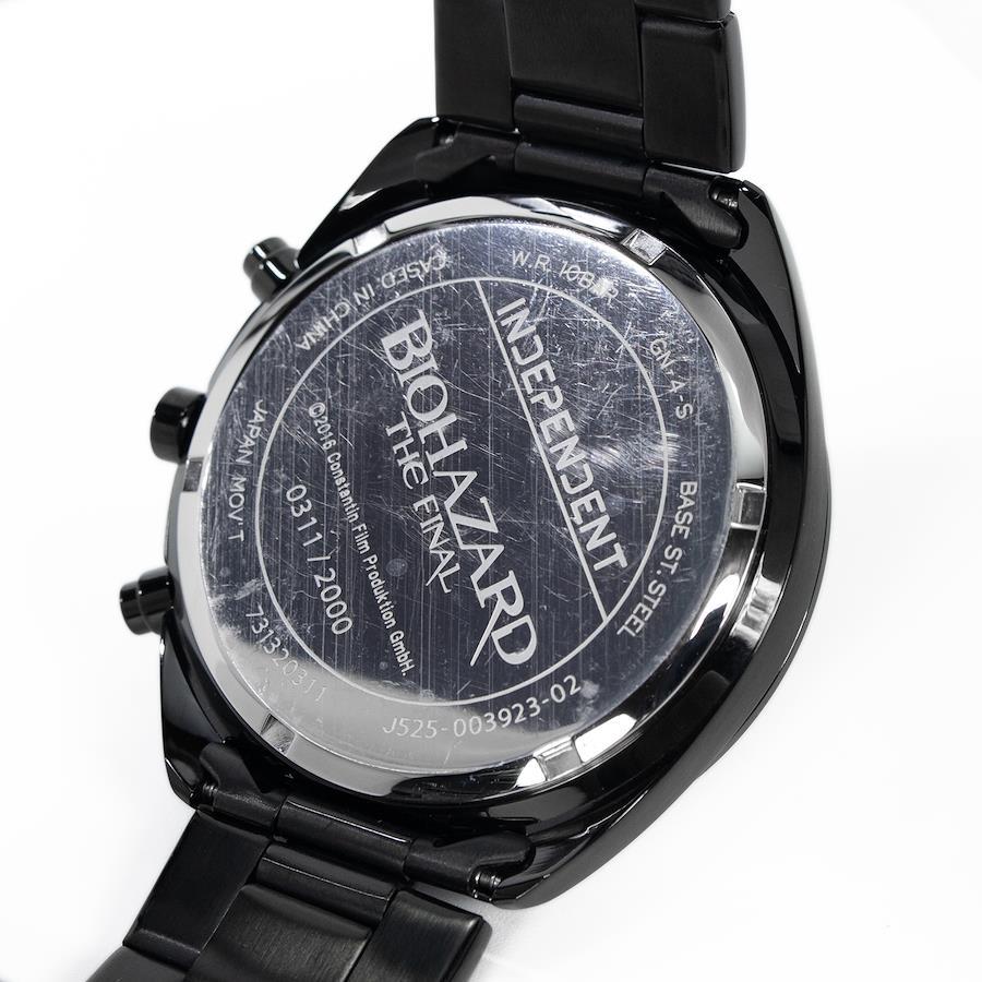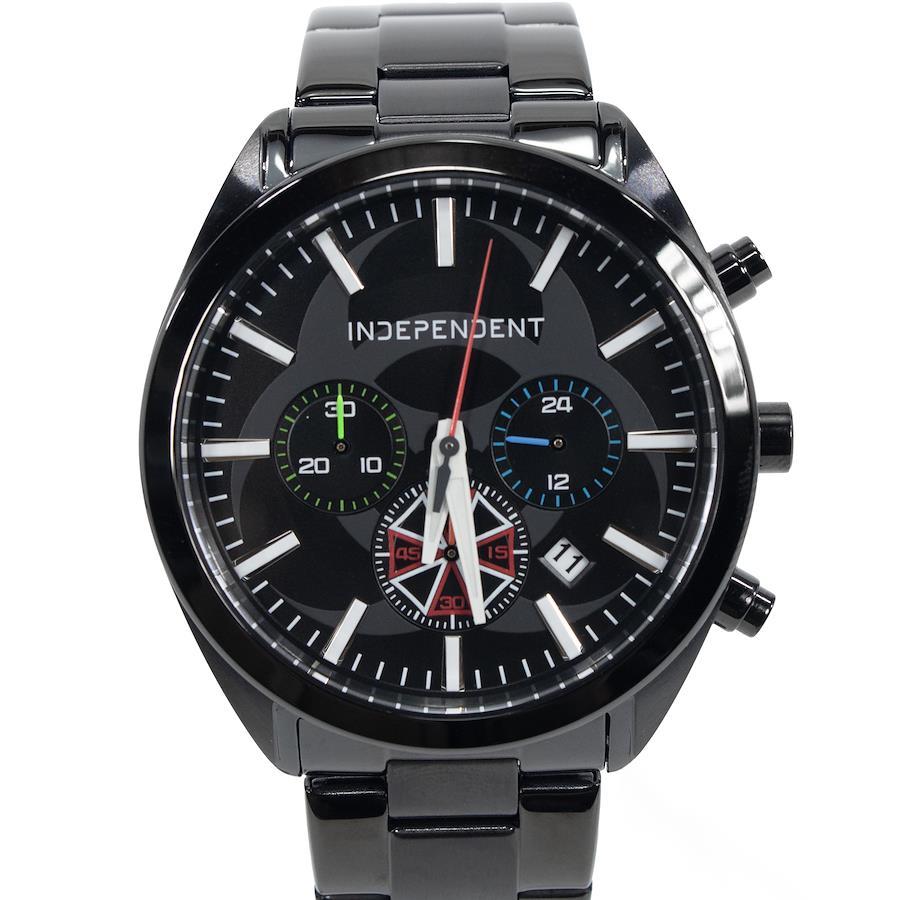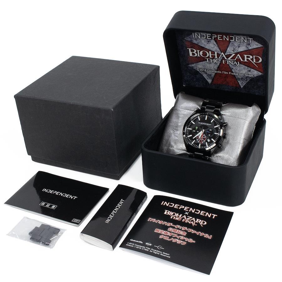 シチズン 腕時計 新品 クォーツ メンズ INDEPENDENT 映画「バイオハザード ザ ファイナル」コラボ J525-003923-02 黒 白 赤 青 緑 BIOHAZARDマーク クロノグラフ ロゴ ブランド 珍しい おしゃれ 綺麗 X133