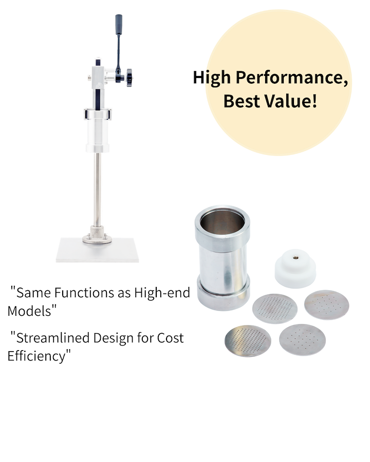 MPタイプは、本格的なモンブラン提供をより身近にする「実用特化型」モデルです。 内部構造や絞り出しの機能は上位モデルと一切変わりませんが、使用素材やデザインを見直すことで、大幅なコストダウンを実現しました。「まずは低予算で導入したい」「機能性を最優先したい」という店舗様に最適です。