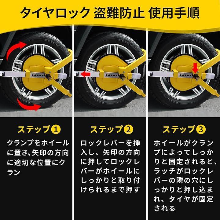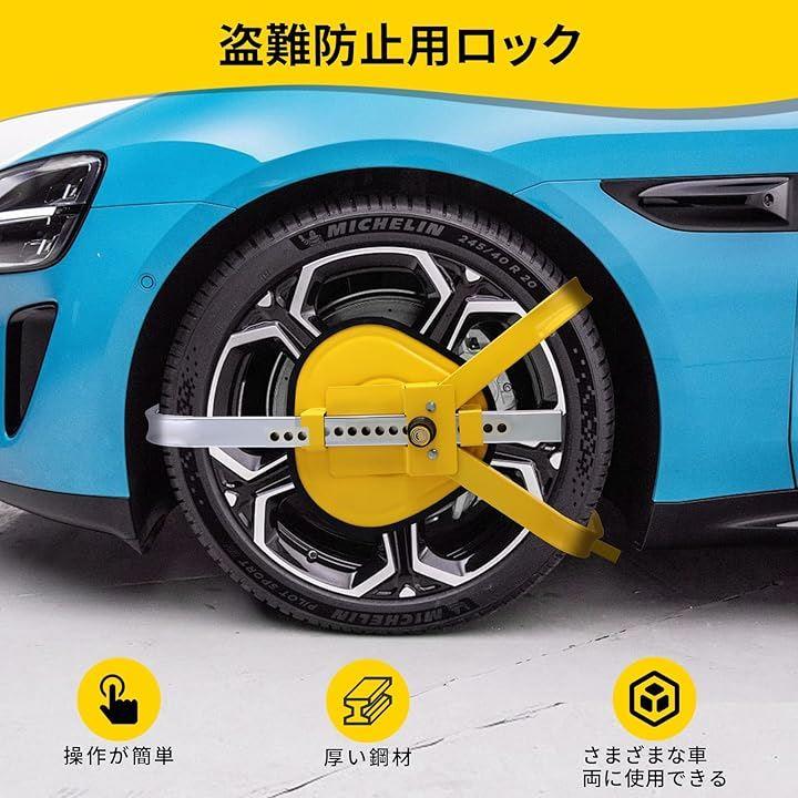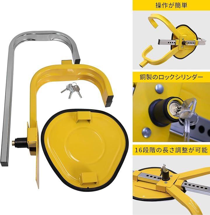 カーセキュリティが目立つ黄色が良い: イエローカラーはロックを目立たせ、泥棒を脅かす.タイヤをはめ込み、キーでロックするだけ.昼夜を問わず、泥棒があなたの車をつけ狙うのを食い止めましょう.愛車の安全を守るための必需品です