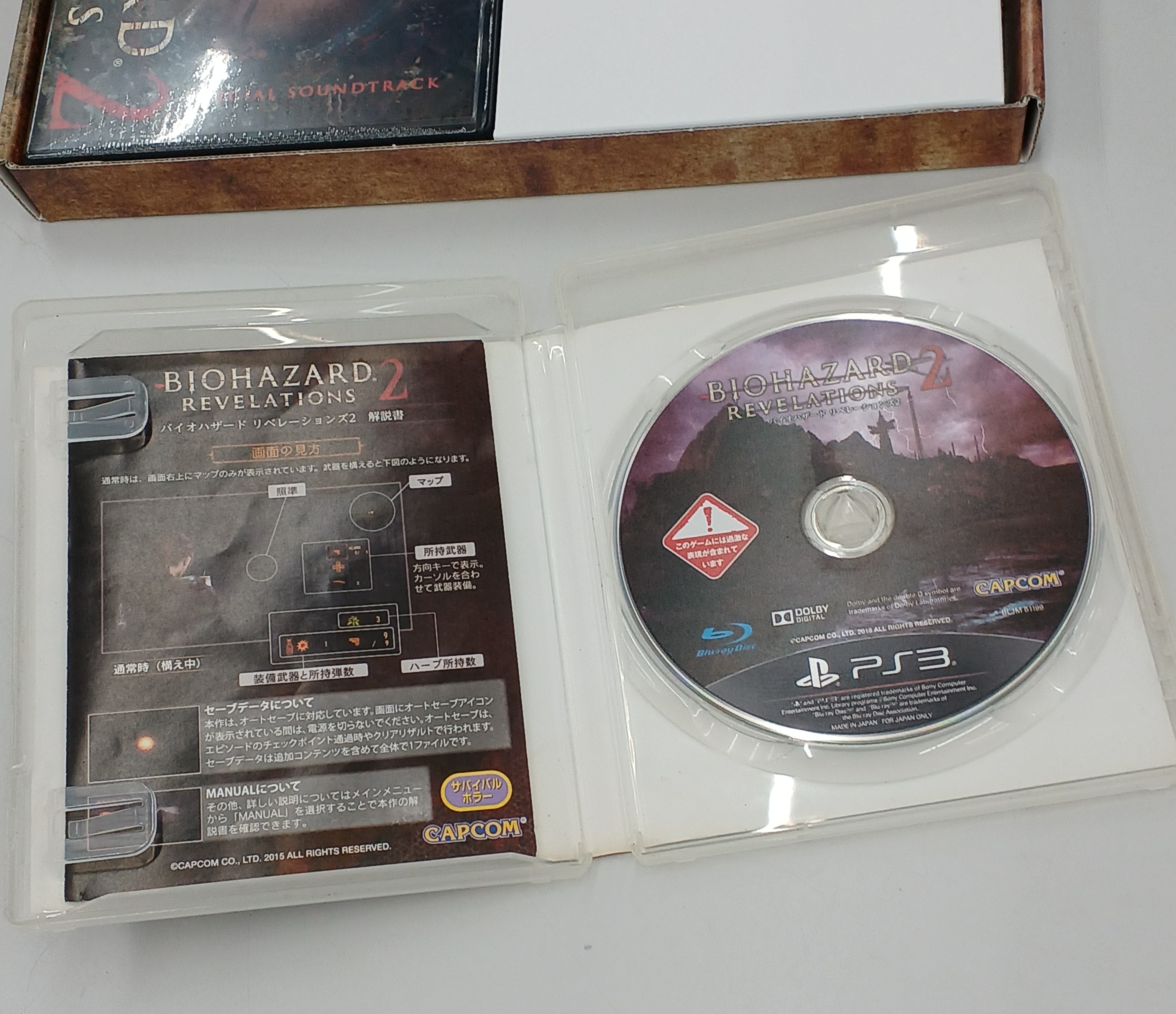 ■備考イーカプコン限定品です。【内容】PS3ソフト『バイオハザード リベレーションズ2』(ソフトケース汚れ有り/ディスク読み取り面はキレイです)・コンセプトガイド・3枚組サントラCD(未開封)・オリジナル収納ボックス