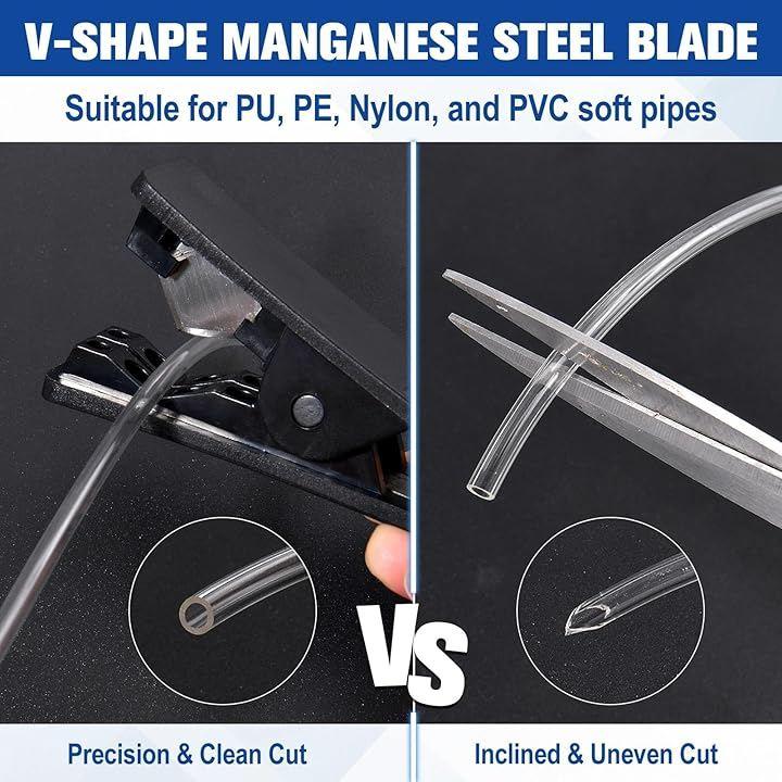プレミアムマンガン鋼から作られたこの角型チューブホースカッターは、PTFE、ナイロン、PU、PVC、PEチューブなど、さまざまなチューブ材料にクリーンで正確なカットを作成するのに優れています。