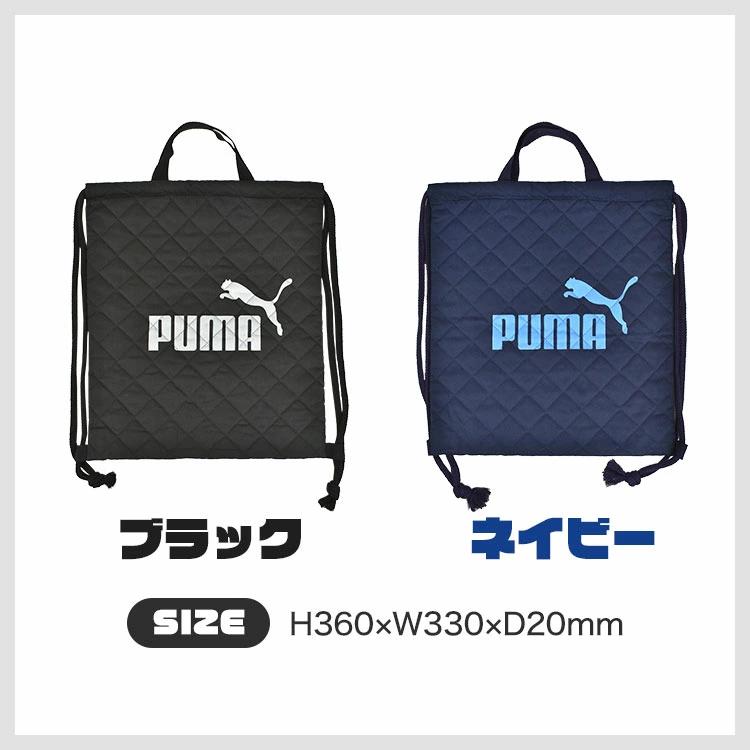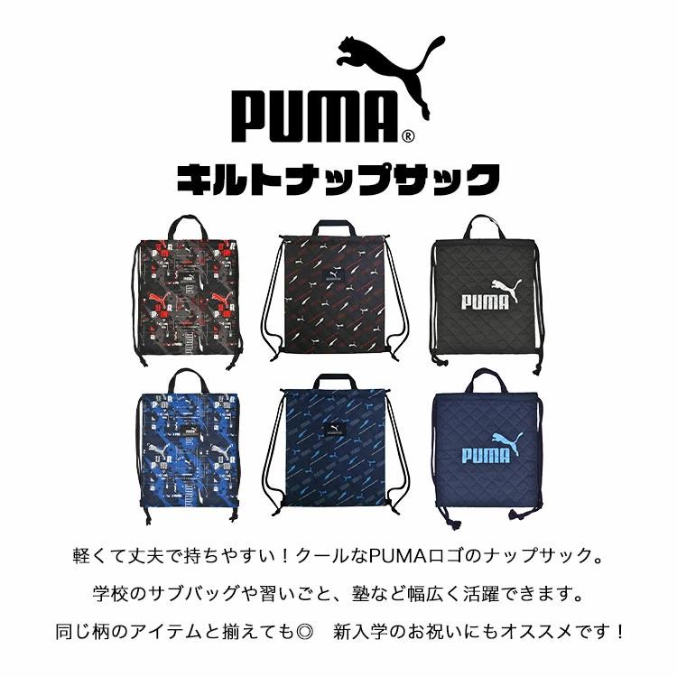 【キルトナップサック】軽くて丈夫で持ちやすい!クールなPUMAロゴのキルトナップサック。学校のサブバッグや体操服入れ、習いごと、塾バッグなど幅広く活躍できます。同じ柄のアイテムと揃えても◎ 新入学のお祝いにもオススメです!